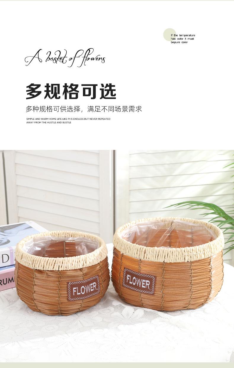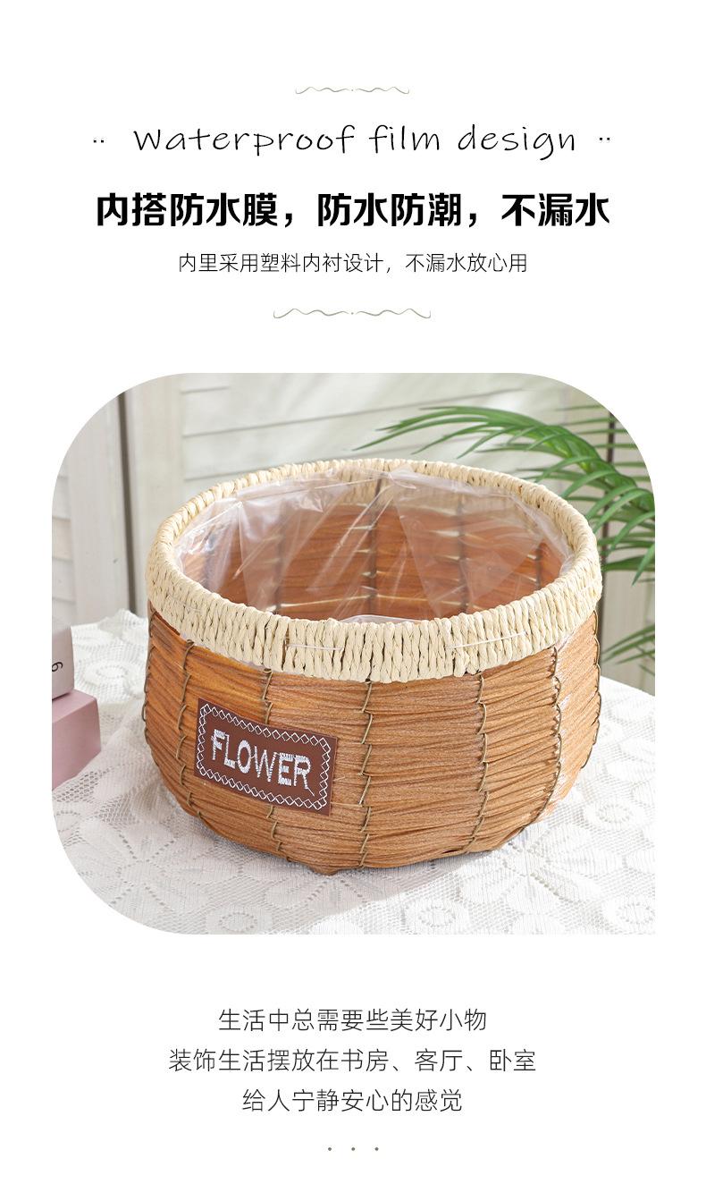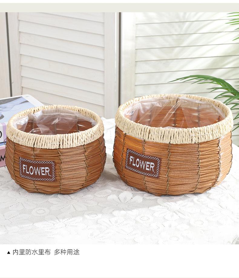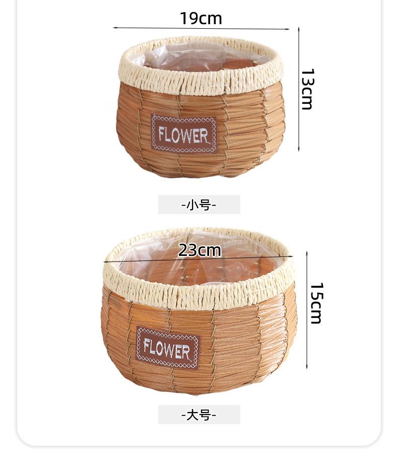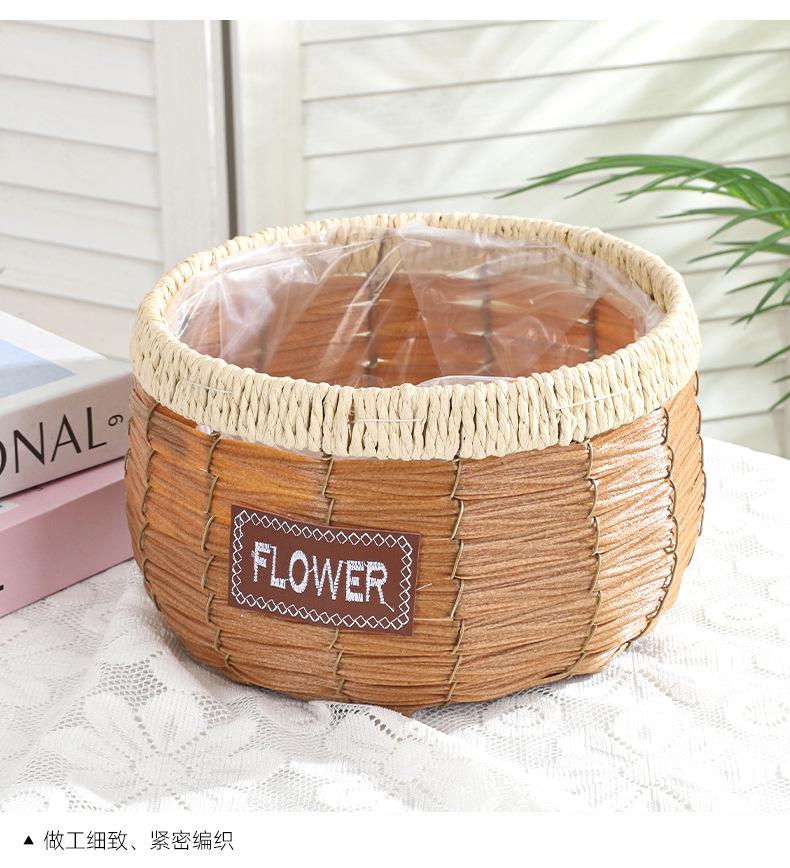 Maceta redonda tejida para flores, tamaño grande y pequeño, de ratán, plástico, cuero, cuerda tejida, cesta para flores para almacenamiento en el hogar, rosa verde, planta en maceta creativa