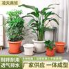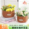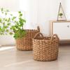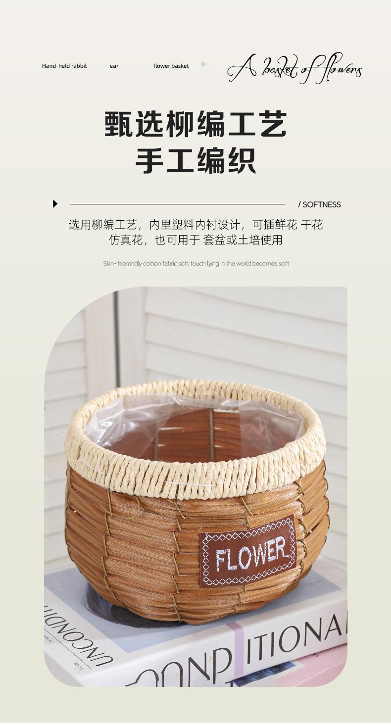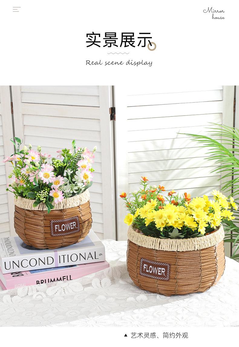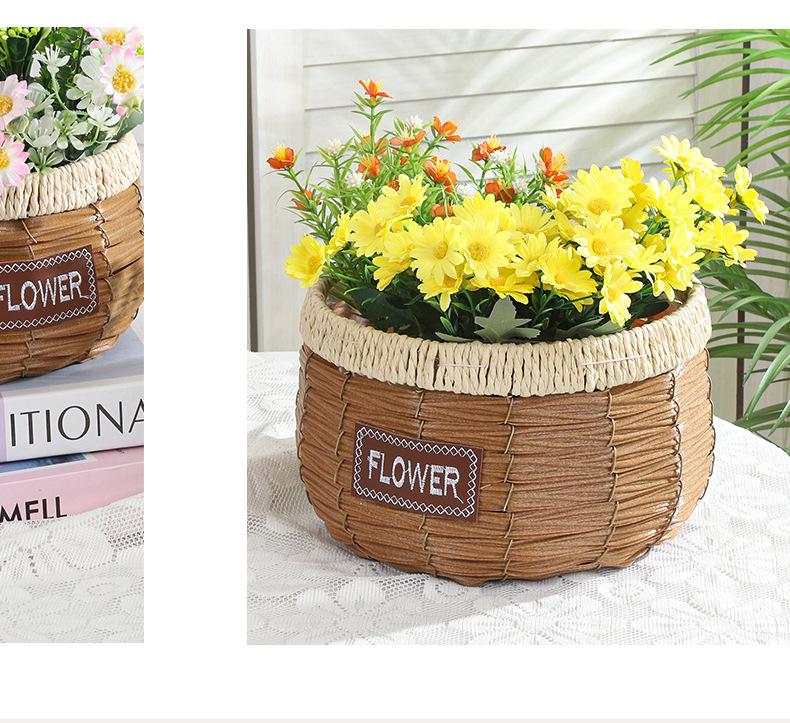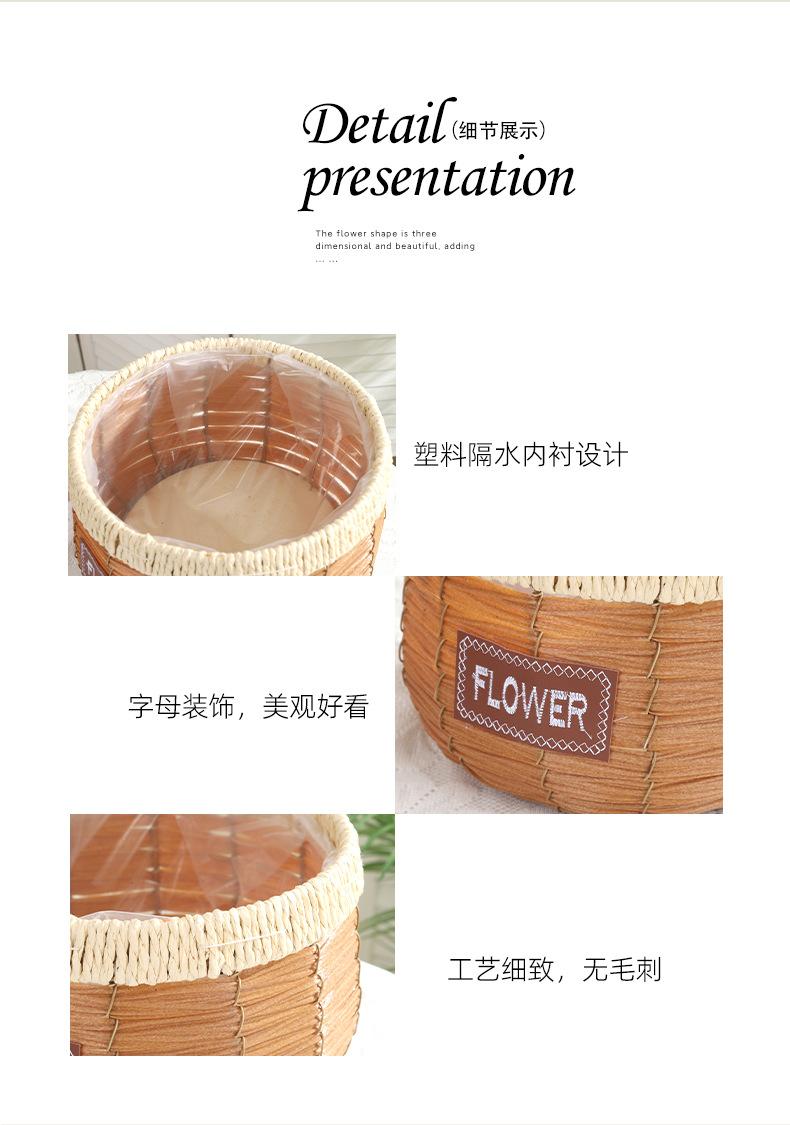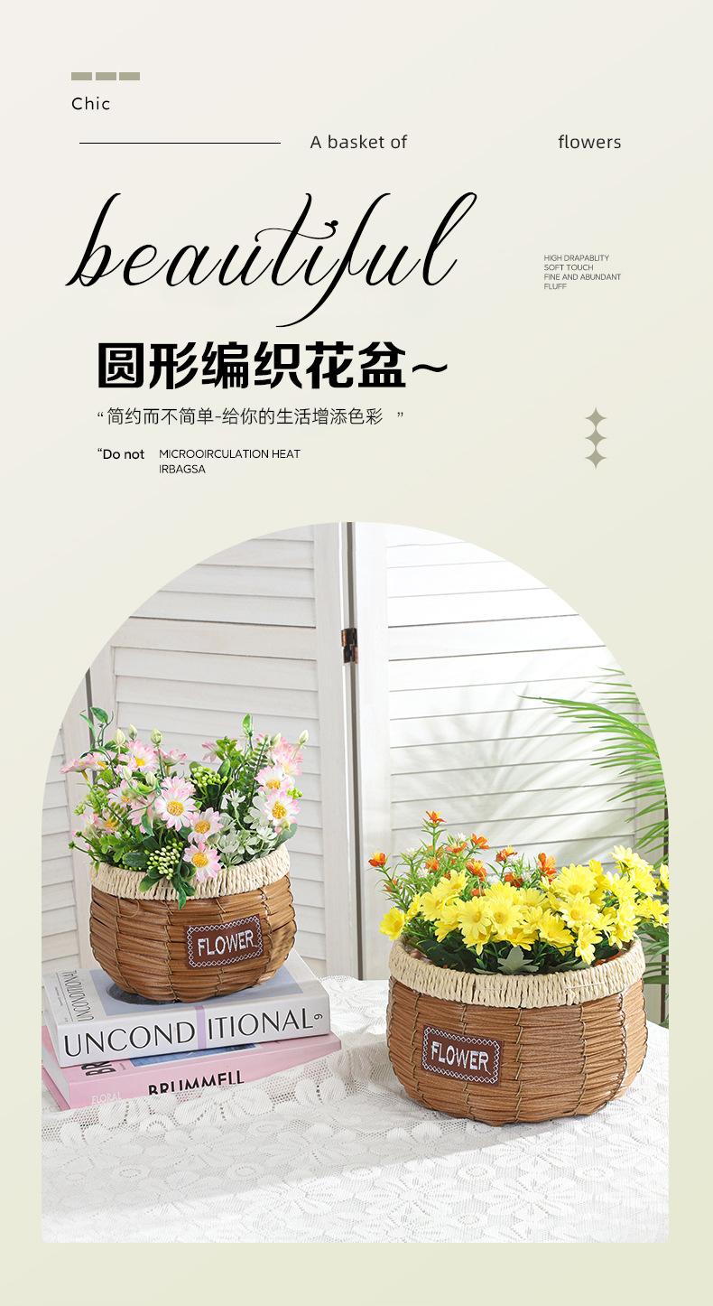 Maceta redonda tejida para flores, tamaño grande y pequeño, de ratán, plástico, cuero, cuerda tejida, cesta para flores para almacenamiento en el hogar, rosa verde, planta en maceta creativa
