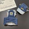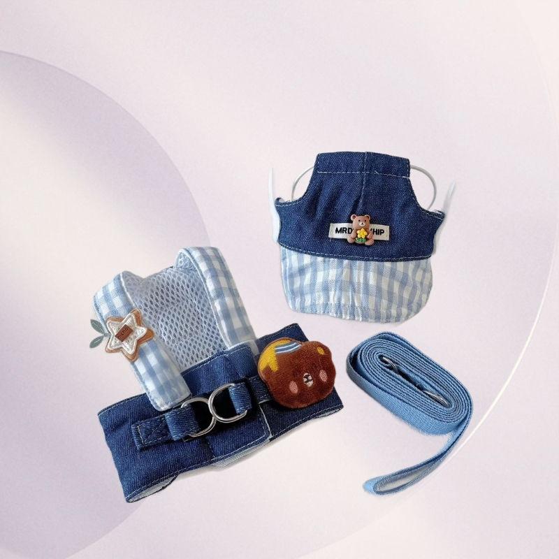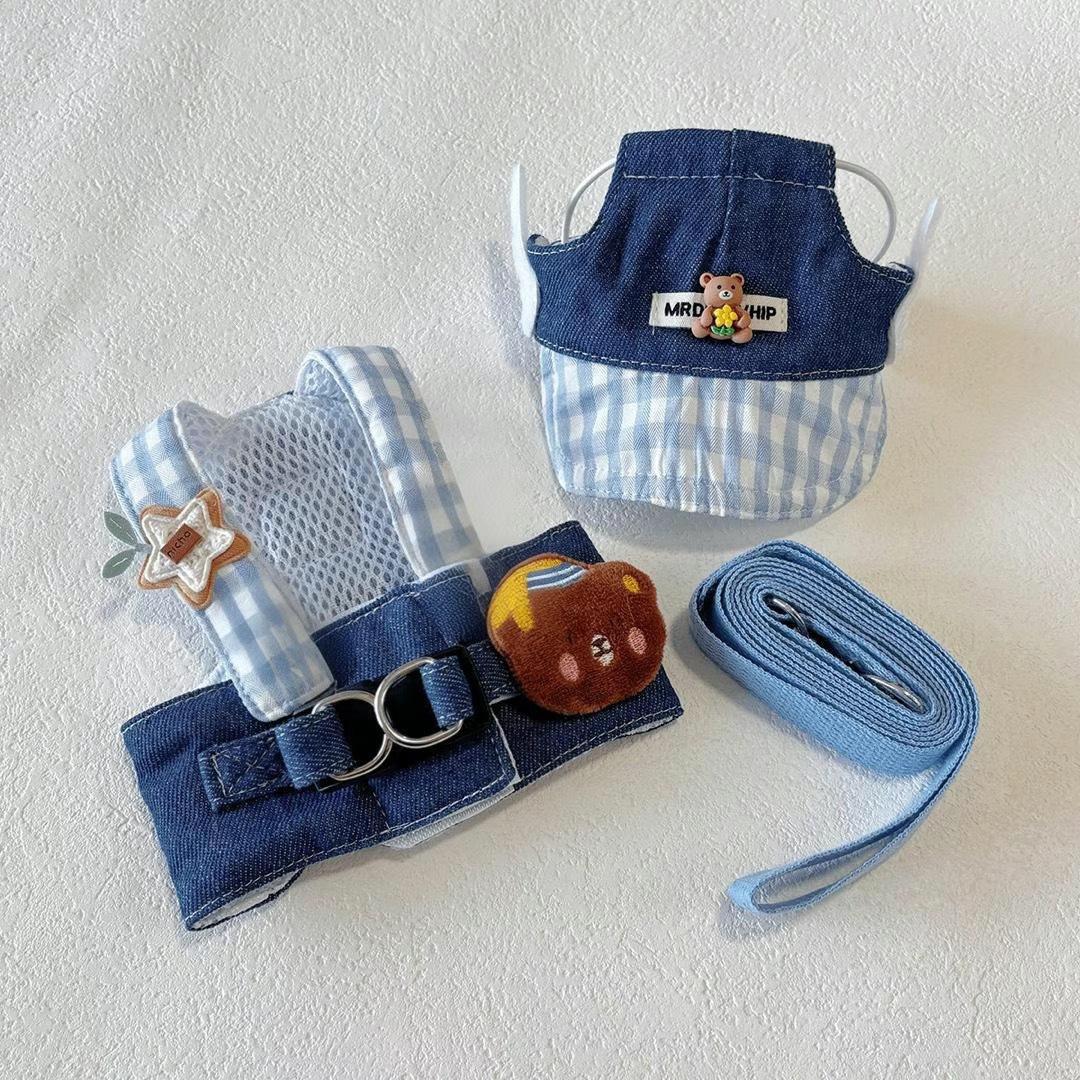Primavera y Otoño Mascota Pecho Espalda Cuerda de Tracción Ropa Perro Gato Oso Denim Pecho Espalda Mascota Linda Tracción Corta