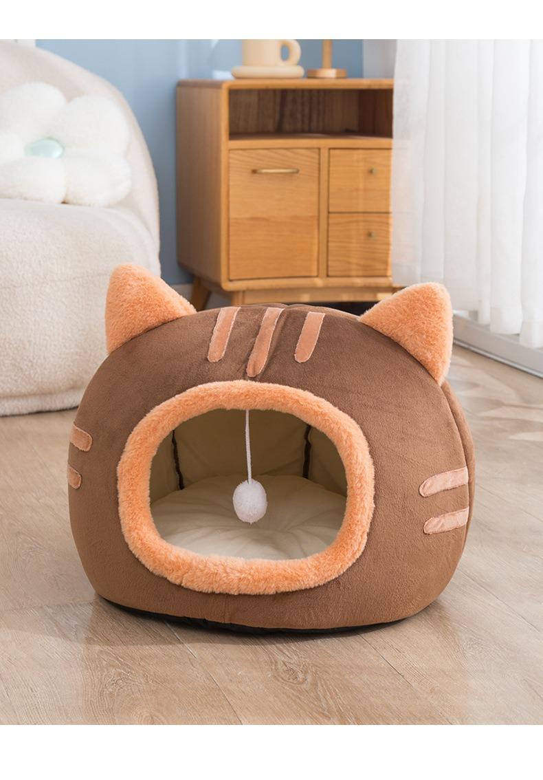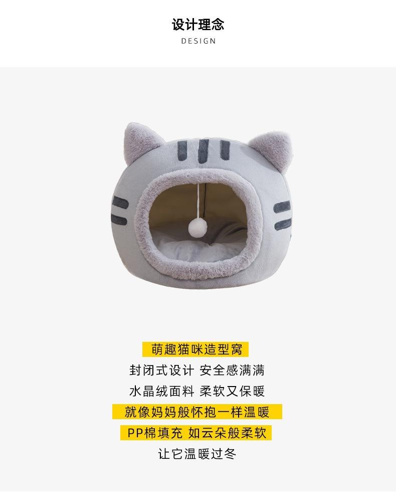 Suministros para mascotas Nido para gatos Cabeza de gato Perrera cálida semicerrada de otoño e invierno Estera nido para dormir para gatos Nido de invierno extraíble y lavable