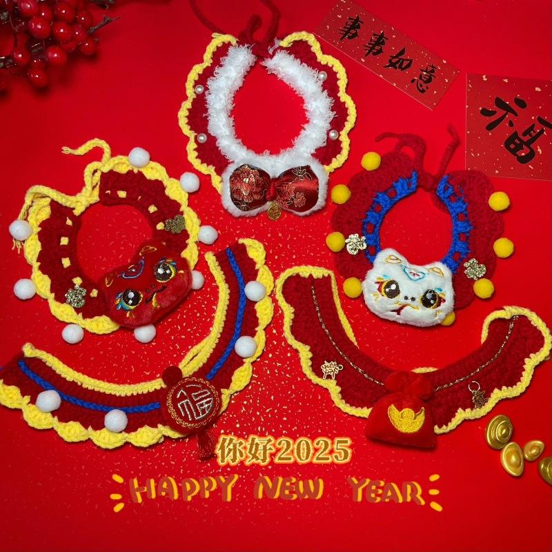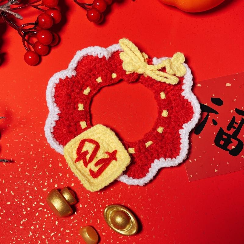 Compra Bufanda Tejida para Mascotas Año Nuevo Gato Perro Bufanda Bola de la Fortuna Cuello de Lana Roja Bufanda de Año Nuevo Accesorios al por mayor en Joom.pro