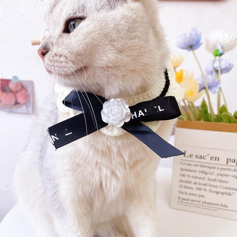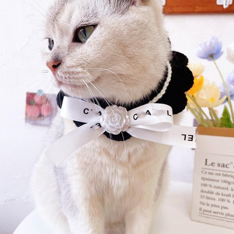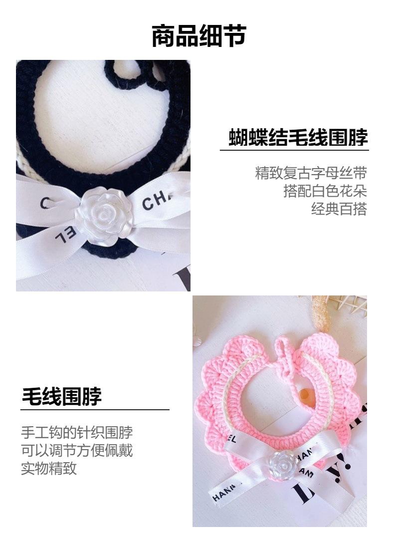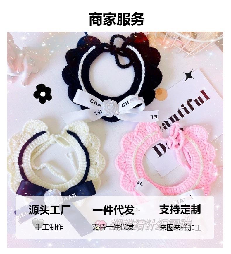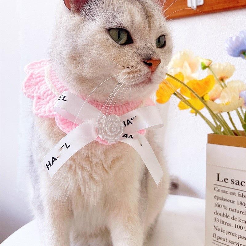 Bufanda clásica de lana con lazo retro para gato, bufanda tejida con flores para perro y gato, venta al por mayor
