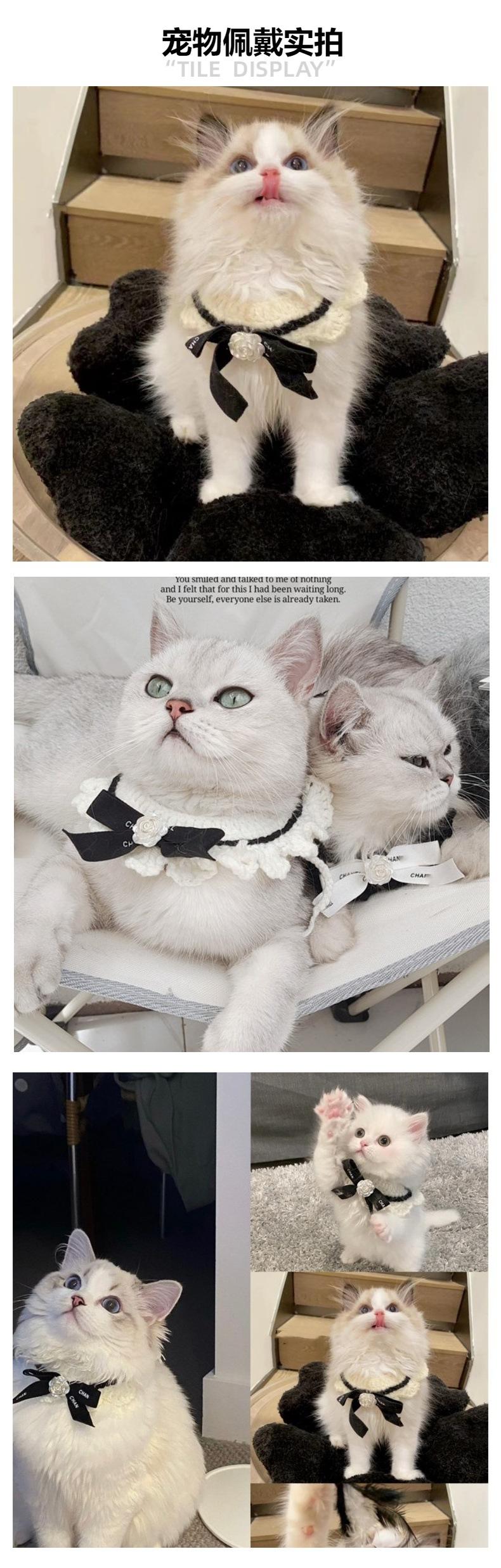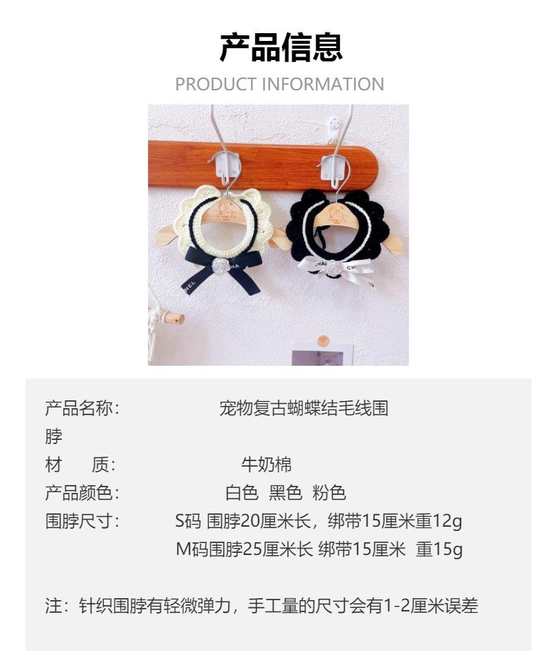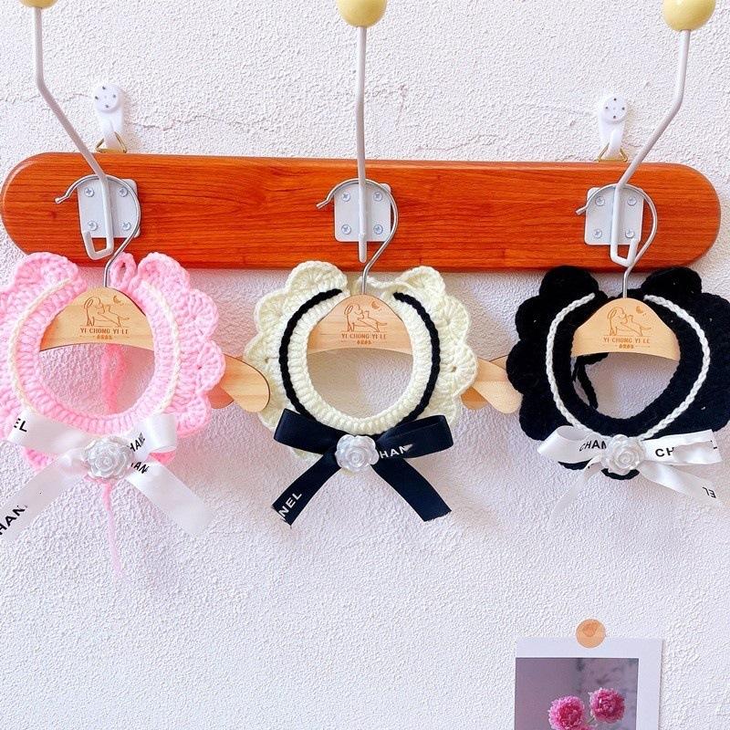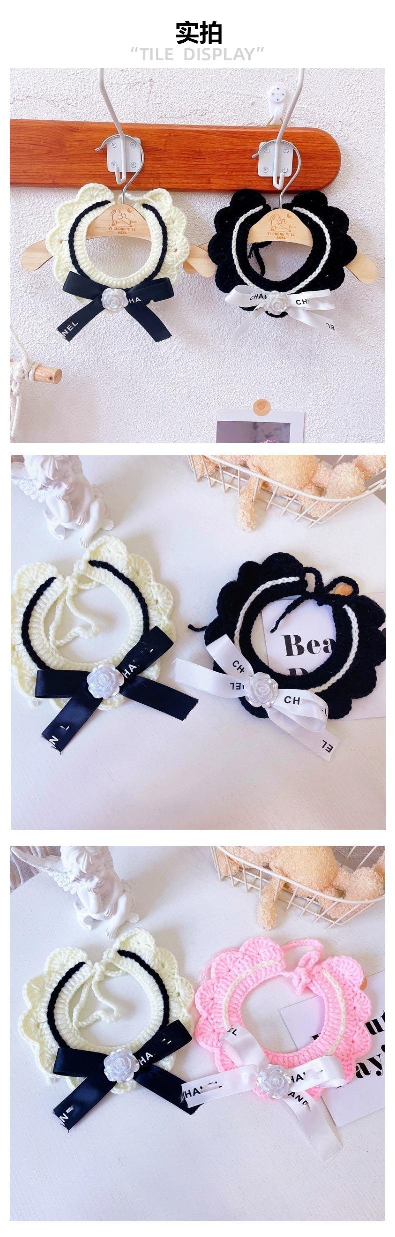 Bufanda clásica de lana con lazo retro para gato, bufanda tejida con flores para perro y gato, venta al por mayor