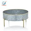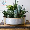 Maceta redonda galvanizada de 12 pulgadas, decoración de granja, maceta de metal antigua con soporte dorado