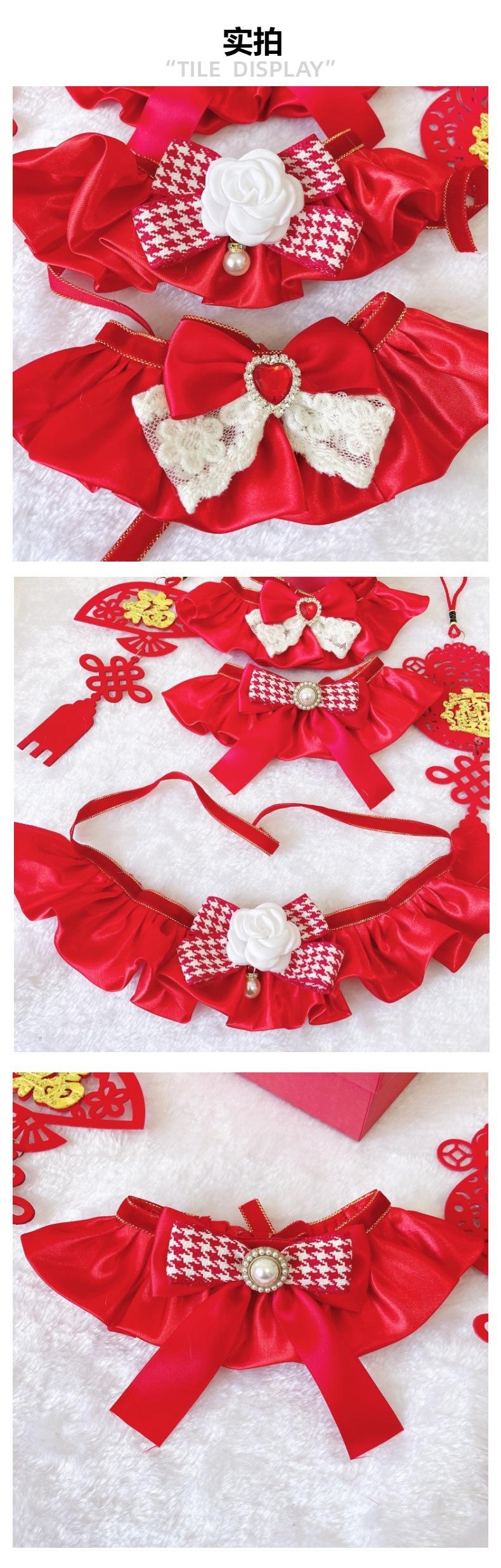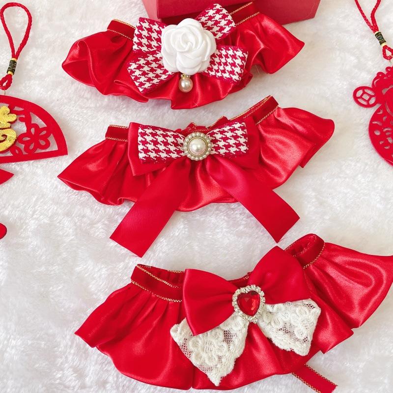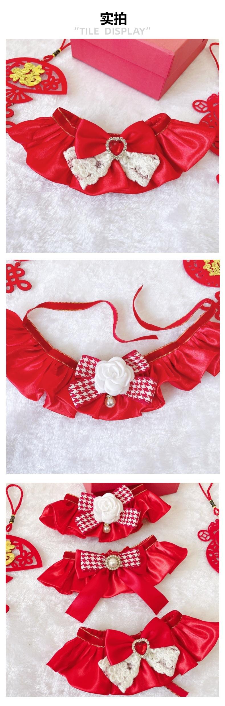 Mascota Año Nuevo Bufanda Lazo Rojo Gato Perro Ropa de Año Nuevo Joyería Pajarita de Flores Collar Festival de Primavera