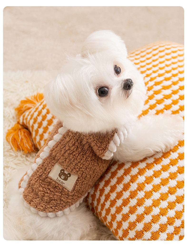 Ropa para perros de otoño e invierno chaleco bordado con parche de oso oso de peluche perro pequeño y mediano bipedicure ropa para mascotas