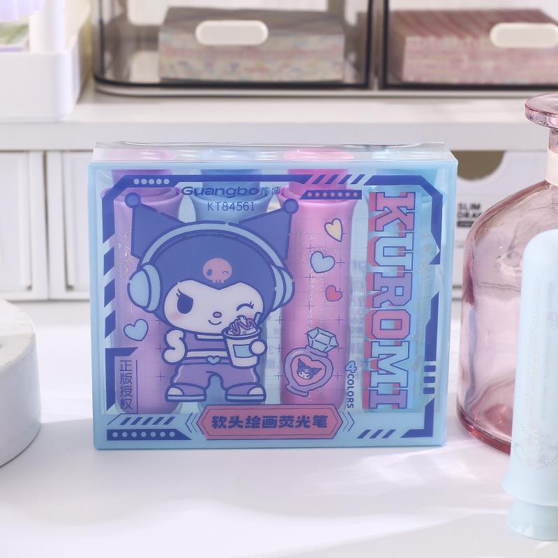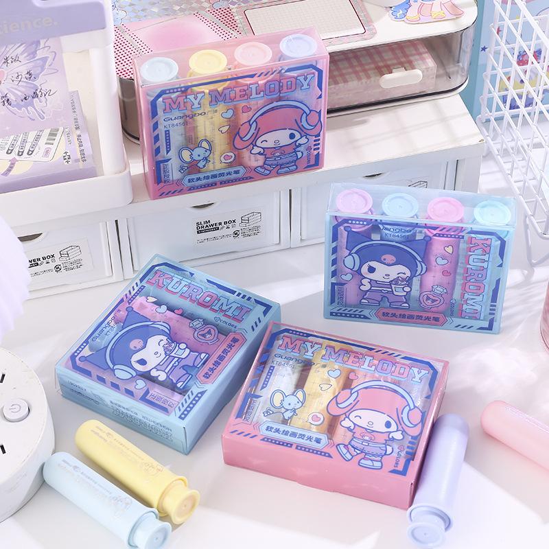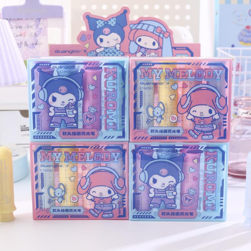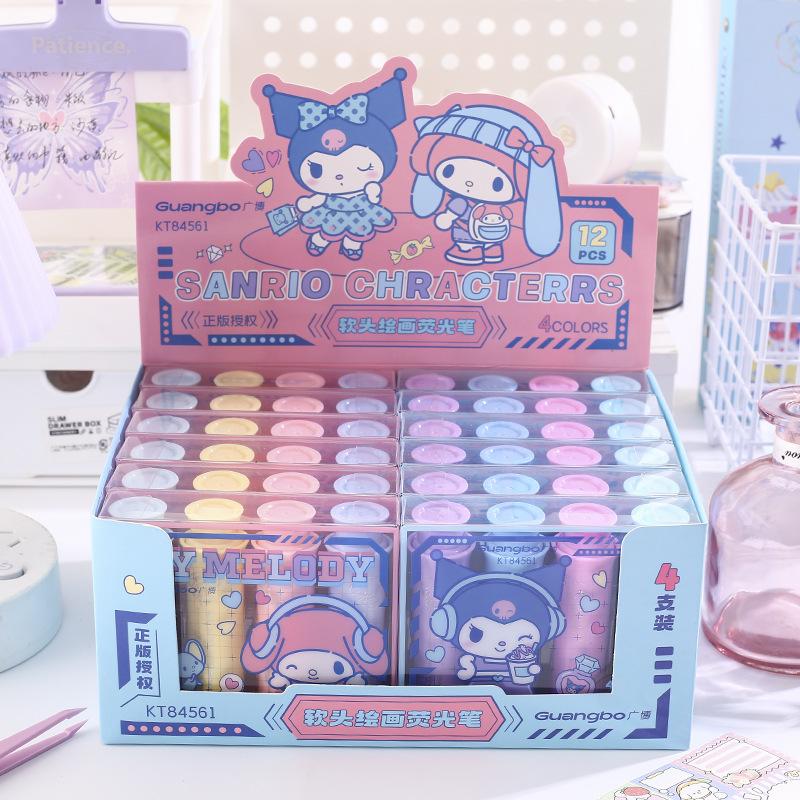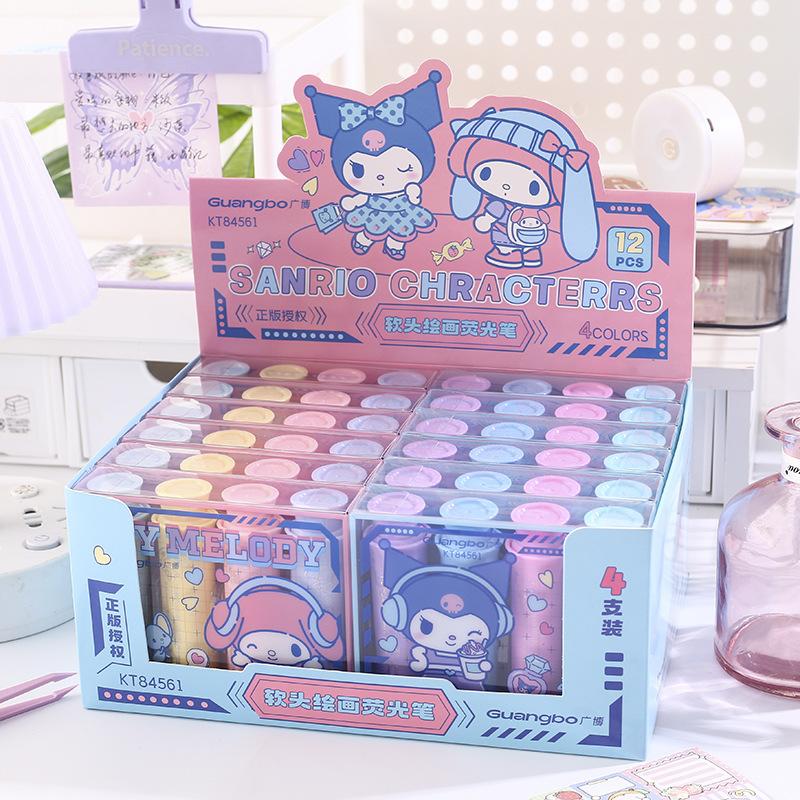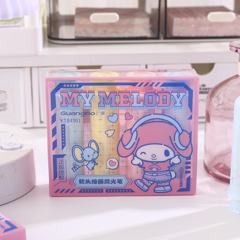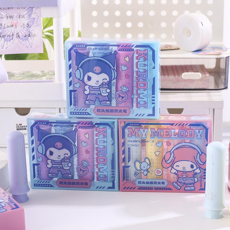 Resaltador de pintura de cabeza suave Sanrio, lindo bolígrafo regordete de Sanrio, marcador de llaves para estudiantes, papelería