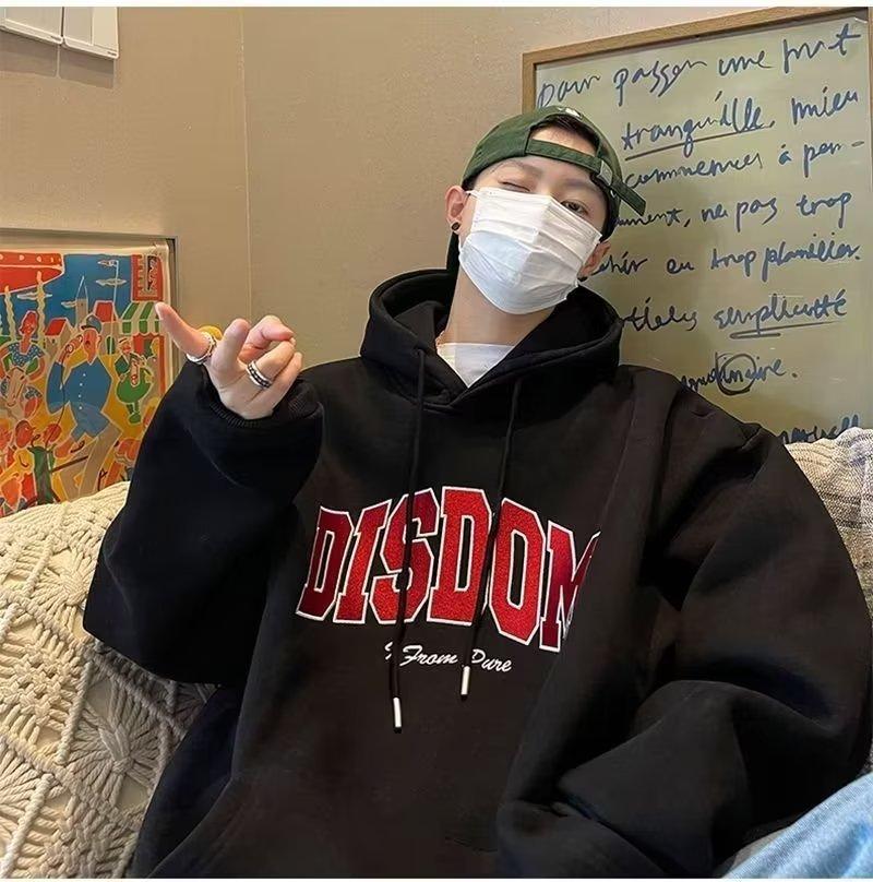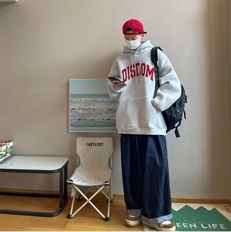 Suéter de marca de moda de estilo americano para hombre, sudadera con capucha gruesa y suelta de otoño e invierno, top informal con estampado de letras de moda para hombre