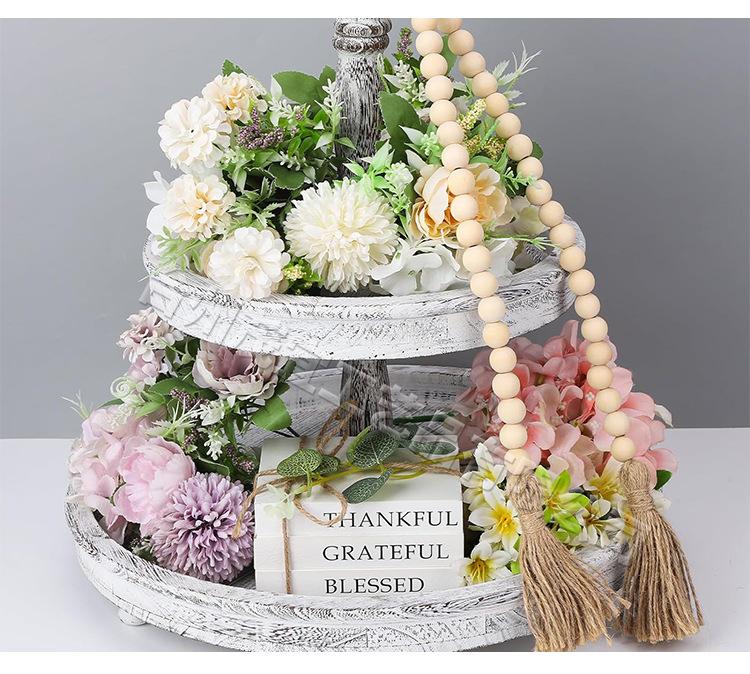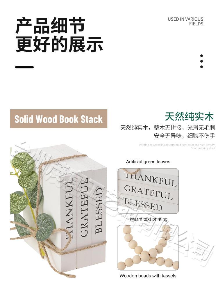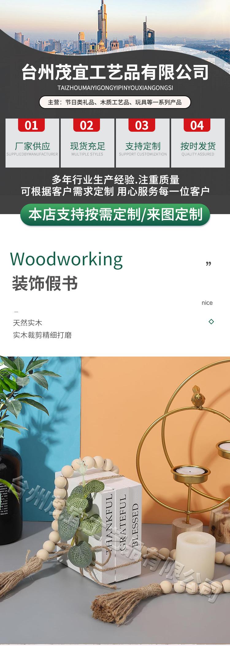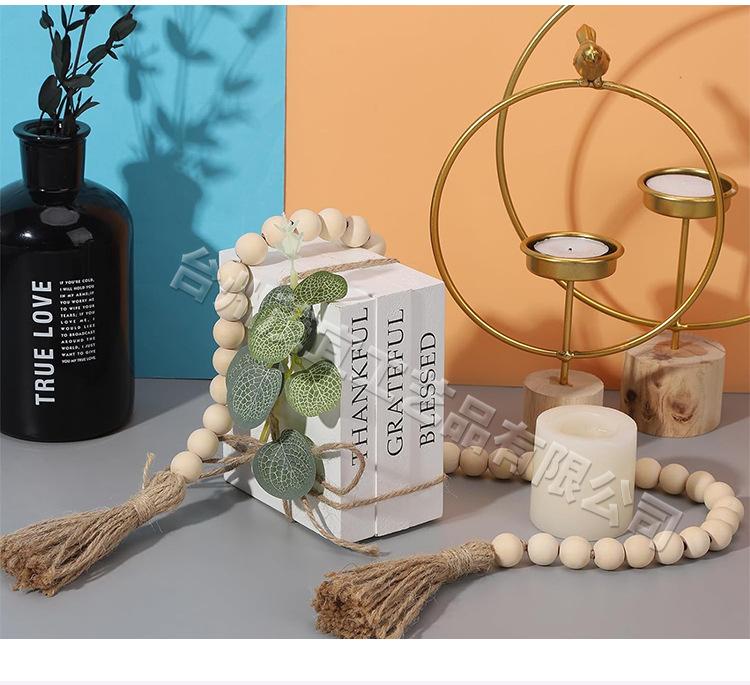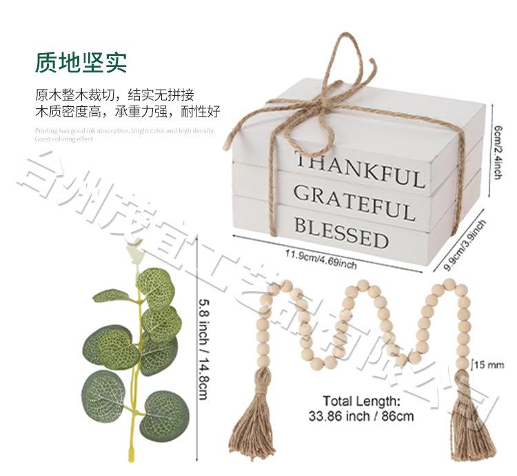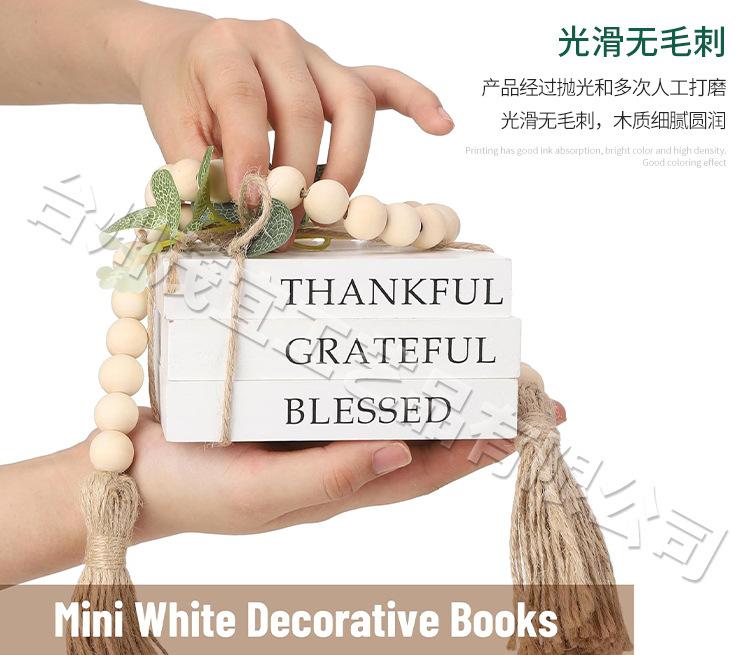 Adornos populares de madera de tamaño pequeño de libros falsos Bloque de madera/Juego de cuerda de cáñamo con cuentas Decoración de encuadernación para sala de estudio Adornos de interior