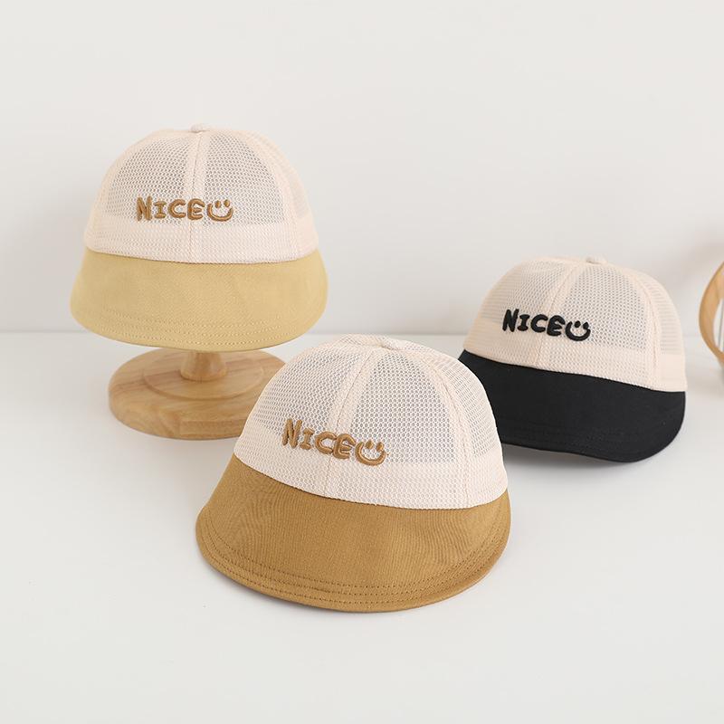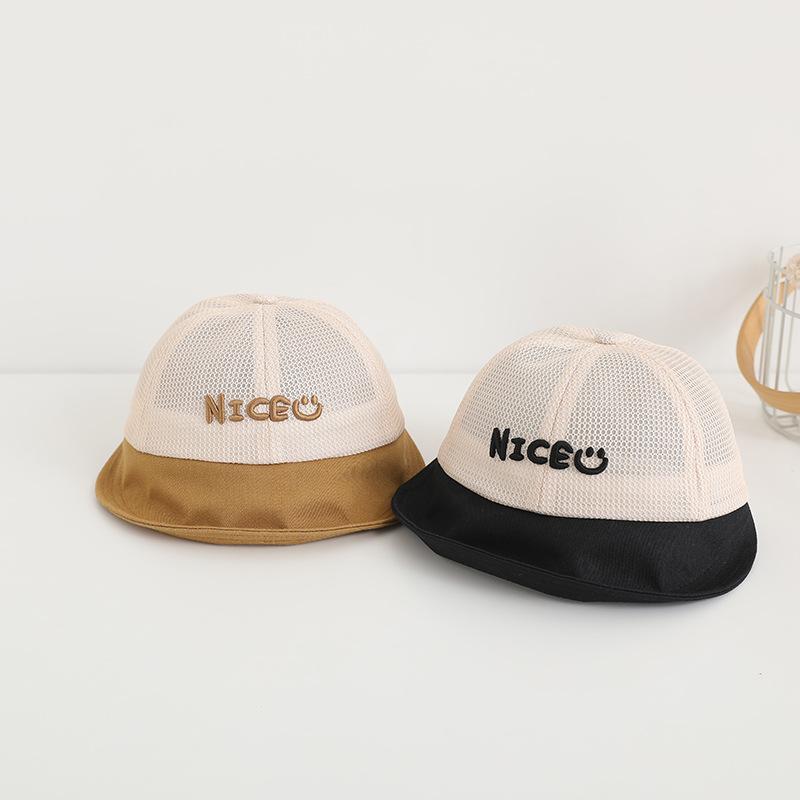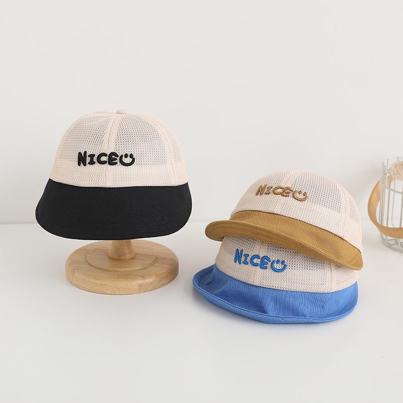 Sombrero de sol de malla transpirable para niños, bordado con letras NICE, sombrero de malla para bebé, sombrero de lavabo con protección solar de verano
