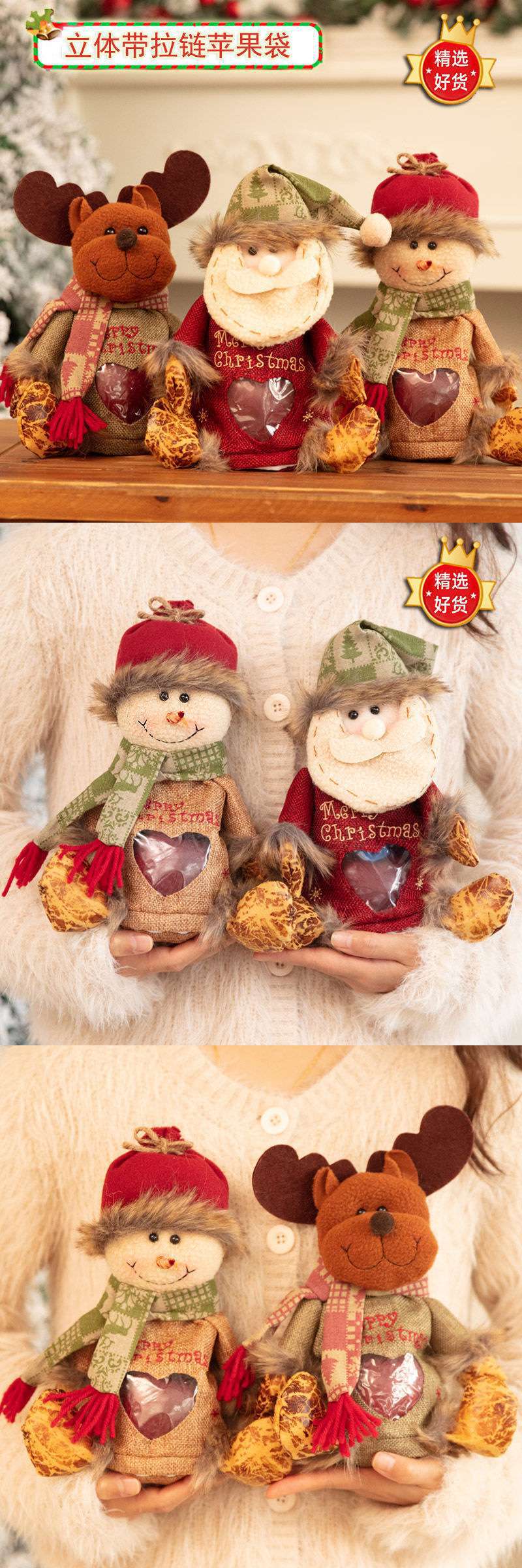Lighted bell apple bag old man, Lighted bell apple bag snowman, Bell with light apple bag bear, Lighted bell a...