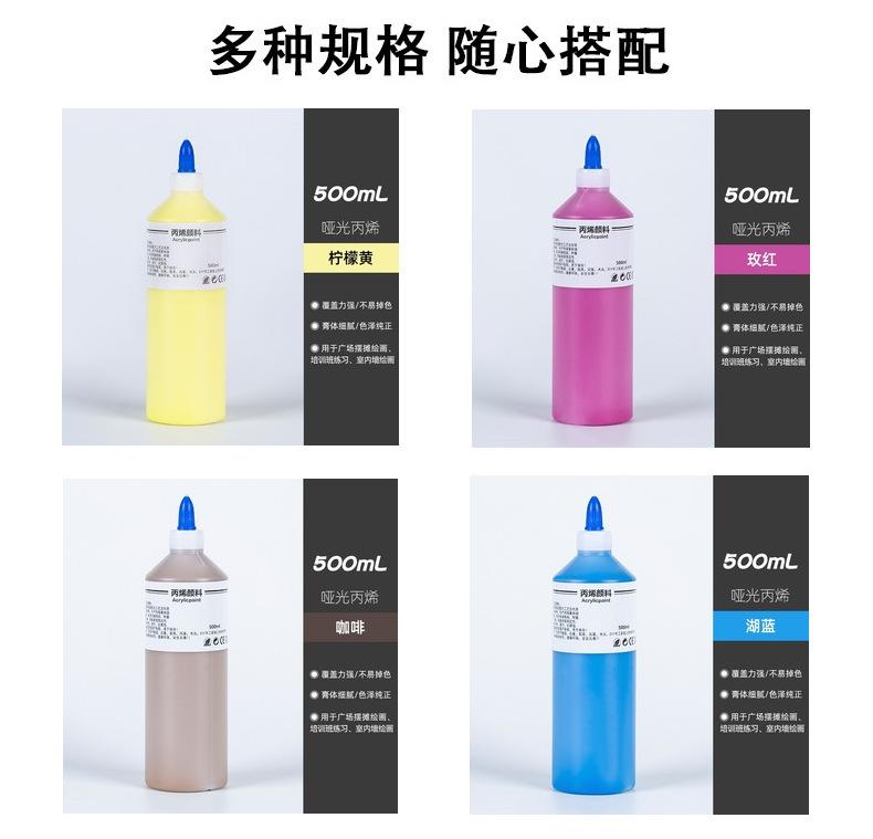 Pintura acrílica de botella grande al por mayor 500 ml cuadrada niños graffiti yeso muñeca pintura de color jardín de infancia pintura de color