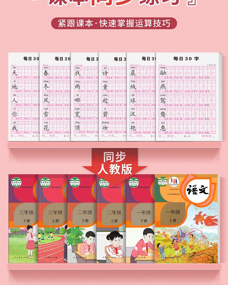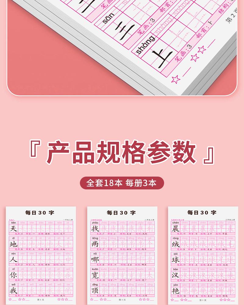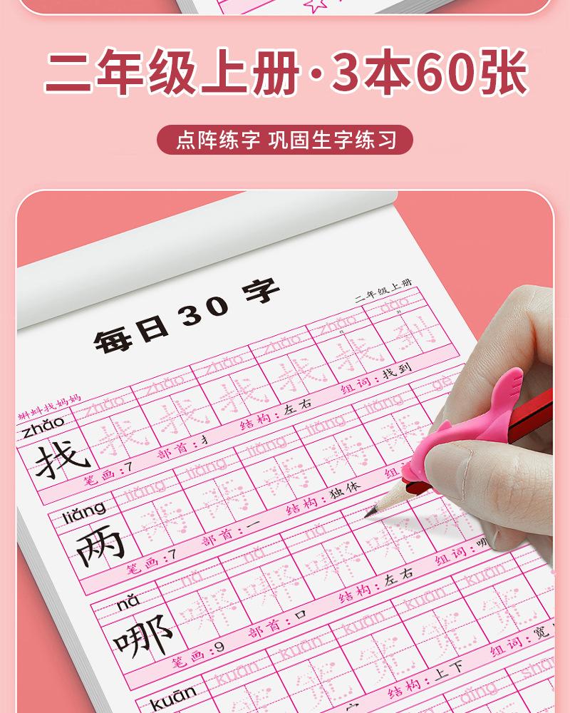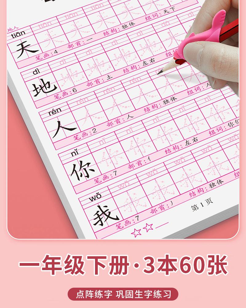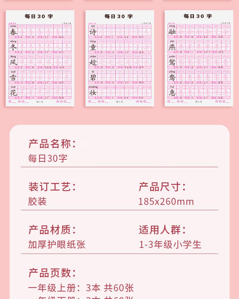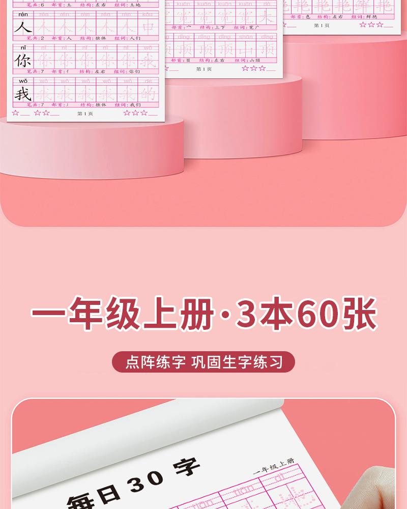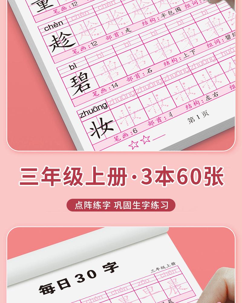 Entrenamiento diario de 30 palabras para estudiantes de primaria, cuaderno de sincronización de libros, cuaderno de copias, cuaderno diario, PEP, sincronización, matriz de puntos, al por mayor