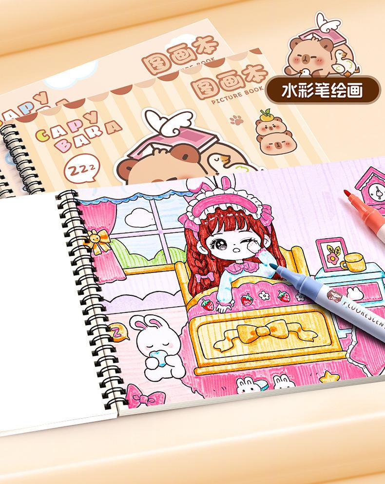Lindo Libro de Dibujo de Dibujos Animados para Estudiantes de Primaria A4 Libro de Dibujo de Espiral Engrosado para Niños Jardín de Infancia Papel de Dibujo Opaco Venta al por Mayor