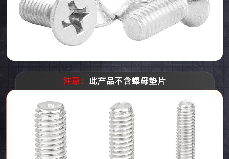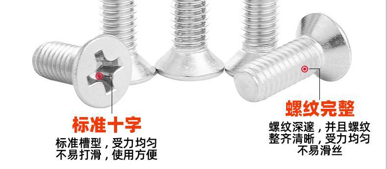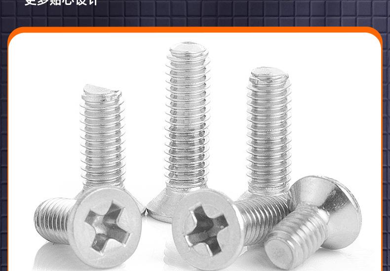 Tornillo de cabeza avellanada de acero inoxidable 201, tornillo de cabeza plana con ranura en cruz, venta al por mayor, tornillo de máquina, tornillo de máquina M2M3M4M5M6M8