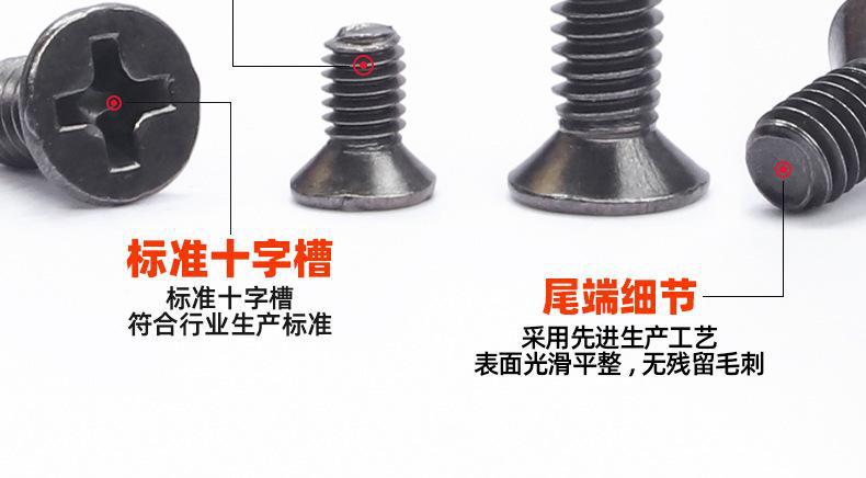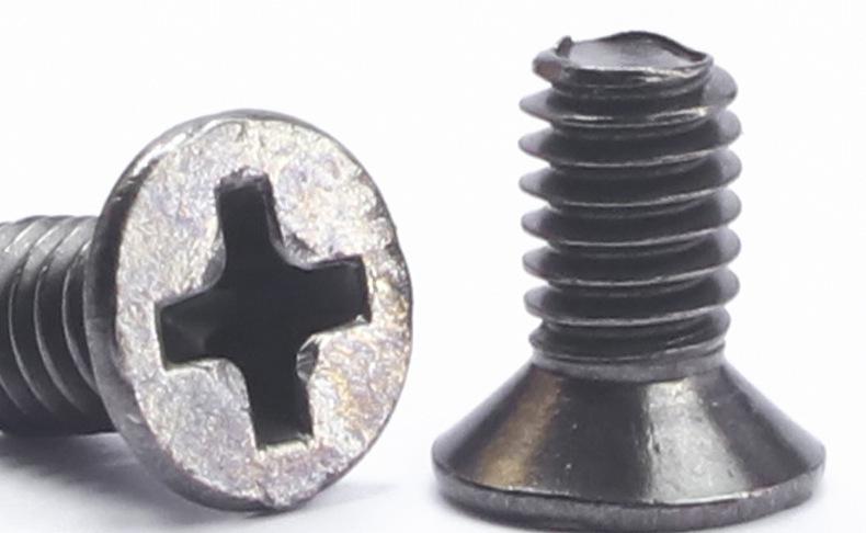 Tornillo de acero al carbono KM con cabeza avellanada cruzada, niquelado negro, tornillo de cabeza plana, tornillo de níquel negro, venta al por mayor, tornillo para máquina, M2M2.5M3M4