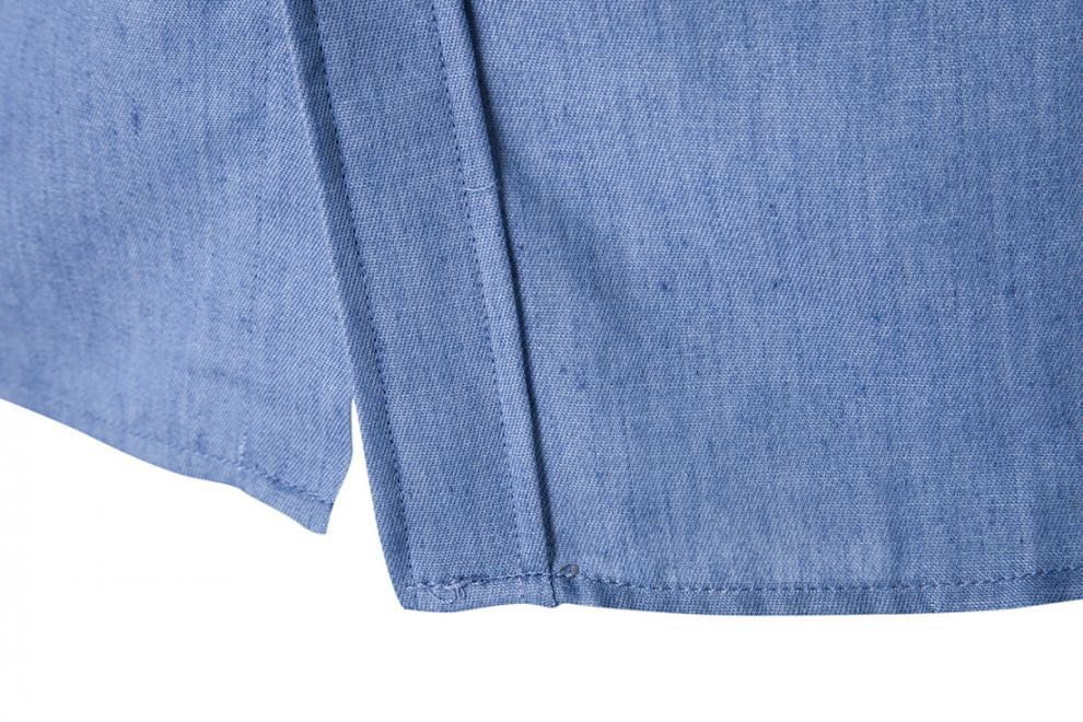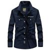 Camisa de hombre nueva de comercio exterior, moda informal, bolsillo de cuero, mezclilla, manga larga, AliExpress.