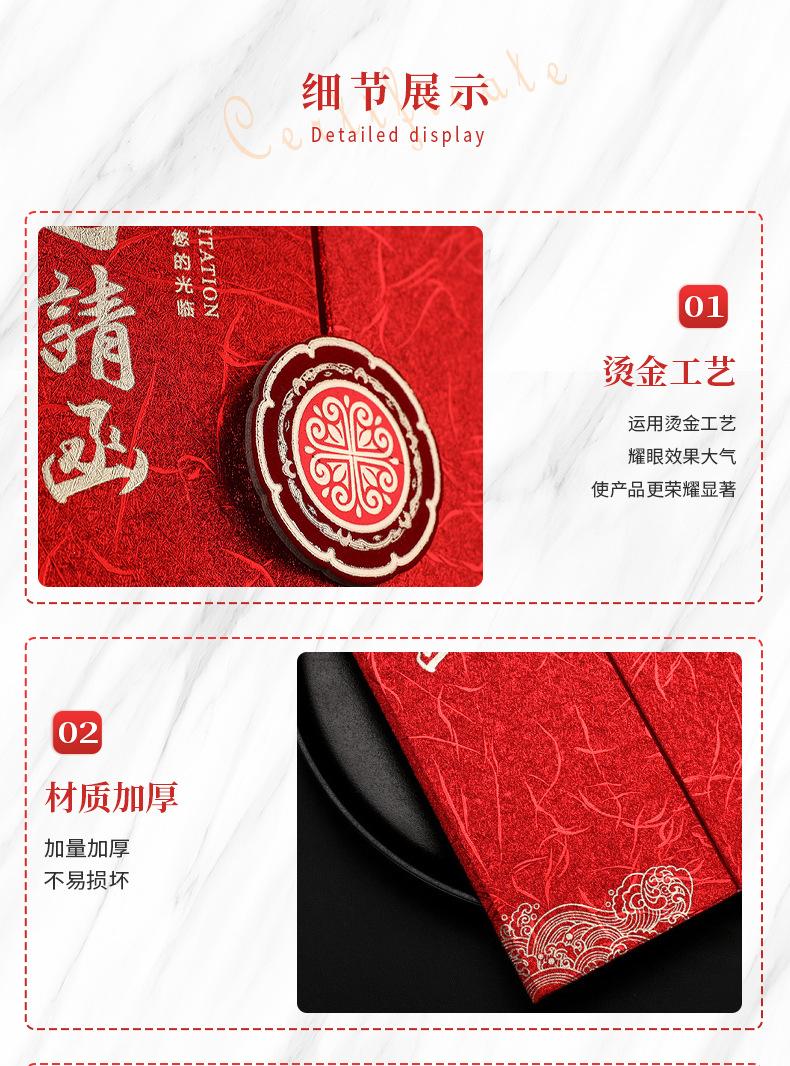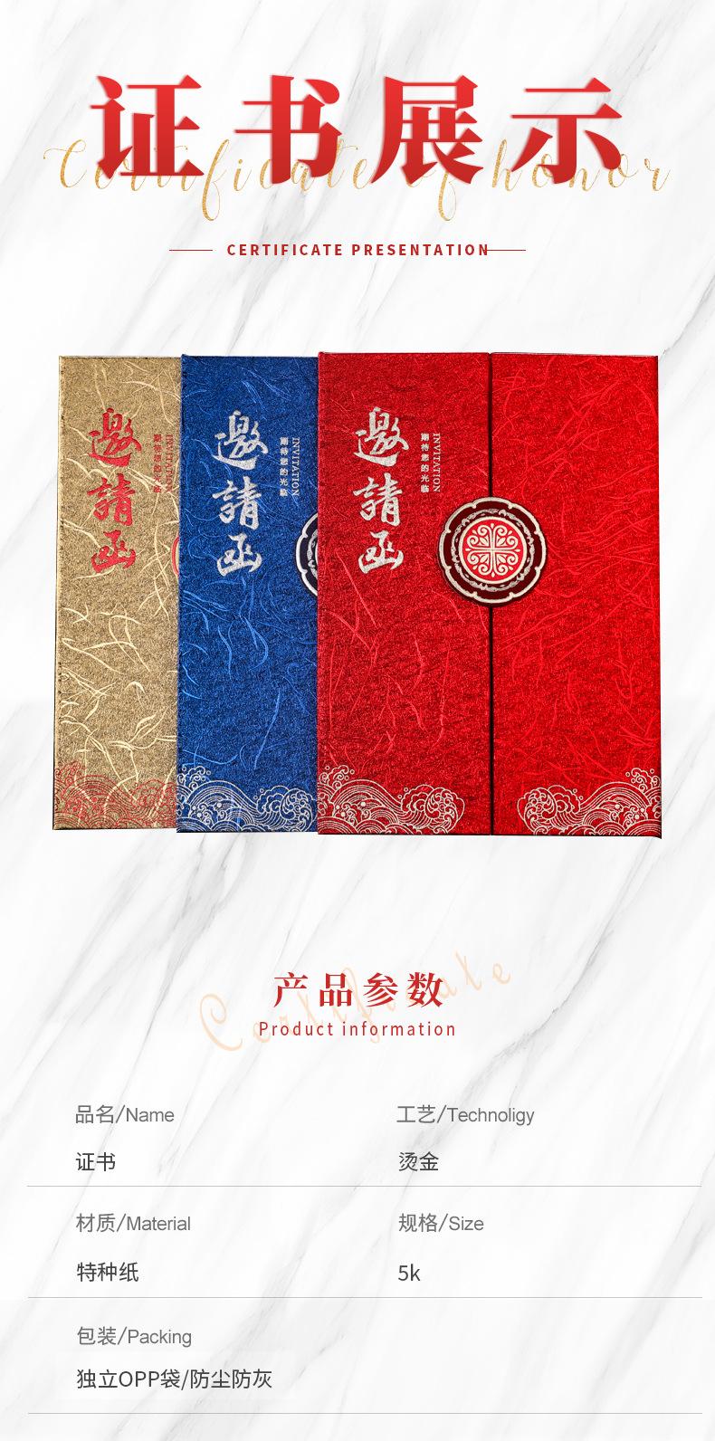 Certificado de invitación creativo de estilo chino personalizado con patrón de bronce Oliss, cubierta con logotipo de marca, certificado personalizado jfc