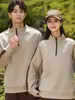 Sudadera deportiva de cuello vertical personalizada para parejas de hombres y mujeres, con media cremallera, forro polar grueso, top informal de otoño e invierno con impresión de logotipo