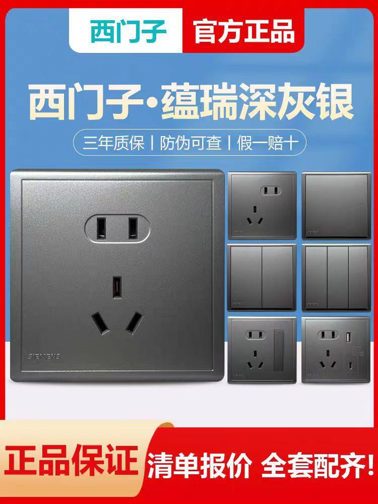 Panel de interruptores Siemens Yunrui, interruptor para el hogar, Yunrui, gris oscuro, plateado, panel oculto de pared, 86, cinco orificios, venta al por mayor