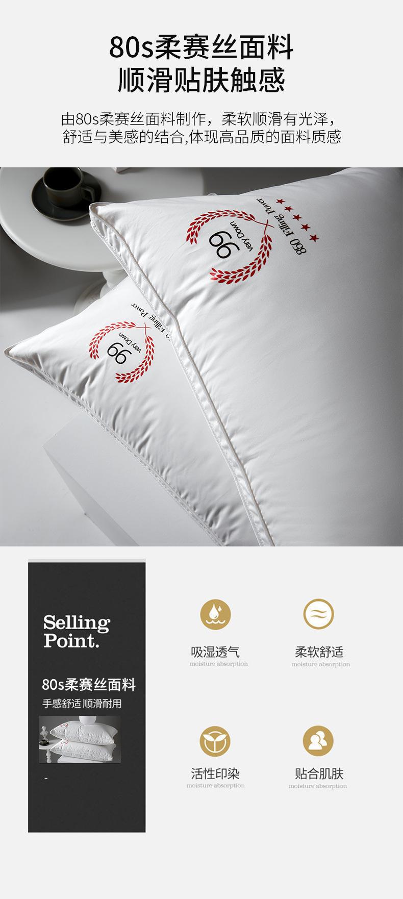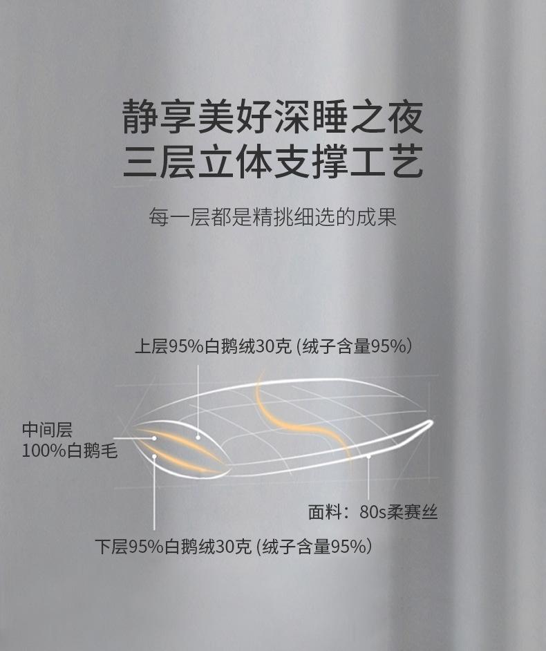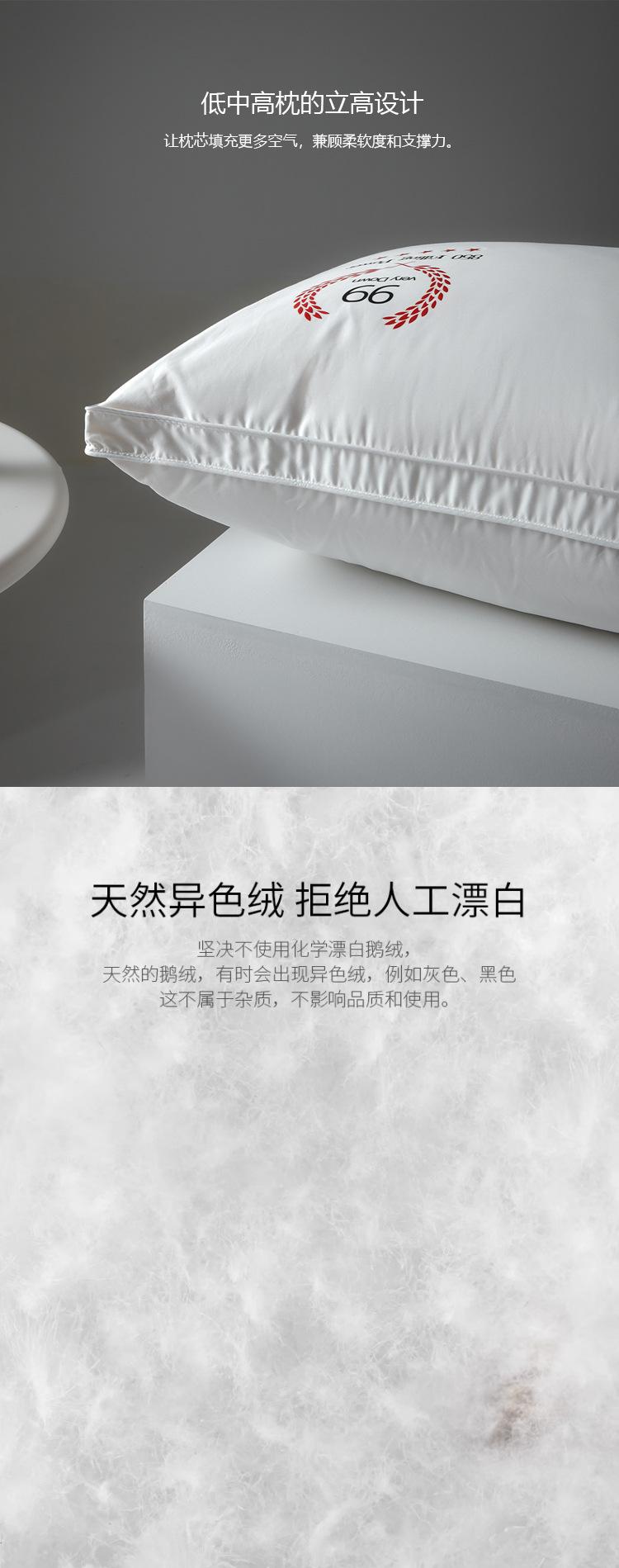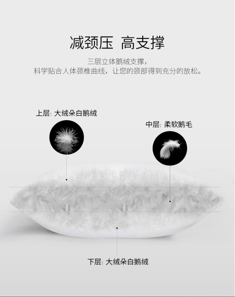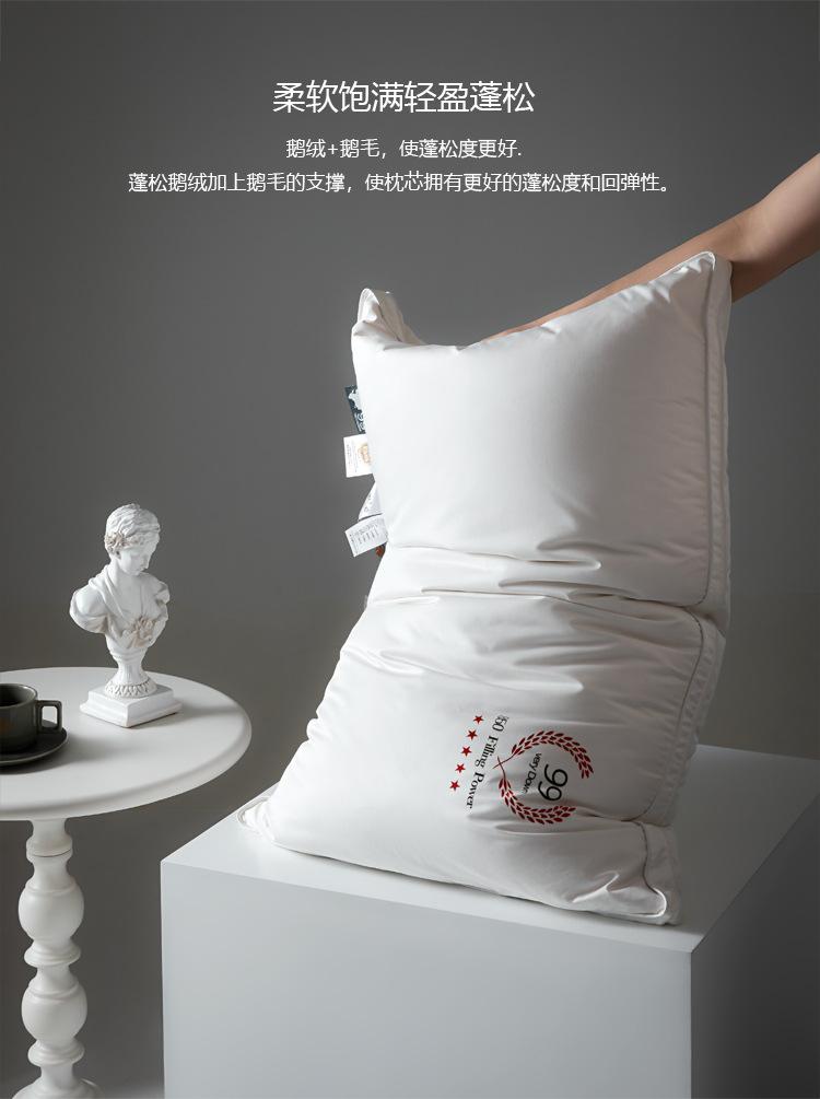 48*74cm (60g of 95% white goose down on the upper and lower layers; Middle layer: 1350g white goose feather)-high pillow
