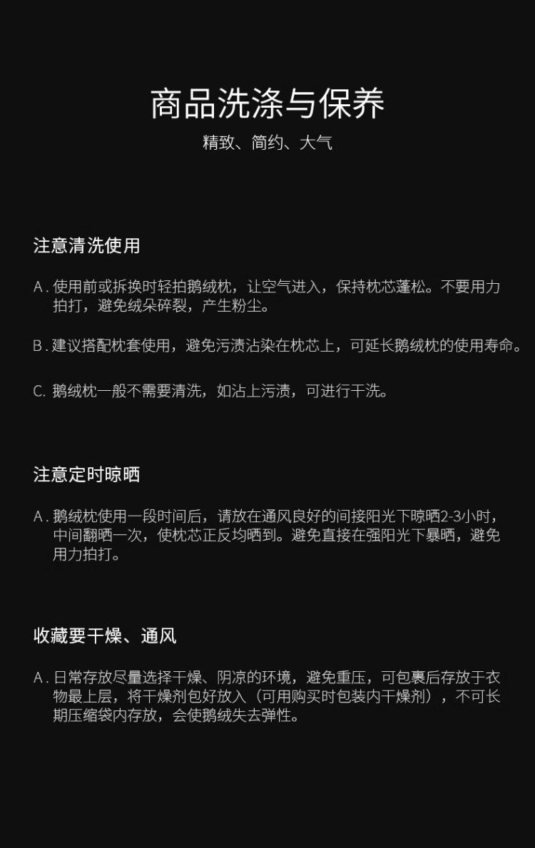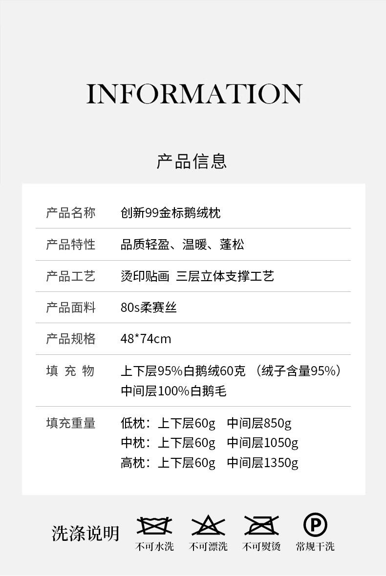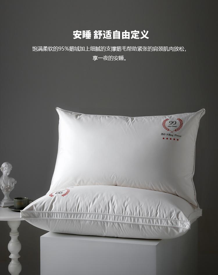 48*74cm (60g of 95% white goose down on the upper and lower layers; Middle layer: 850g of white goose feather)-low pillow