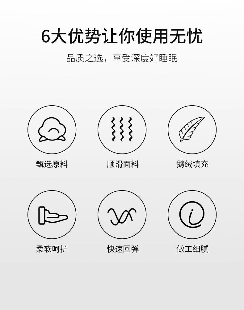 48*74cm (60g of 95% white goose down on the upper and lower layers; Middle layer: 1050g of white goose feather)-middle pillow