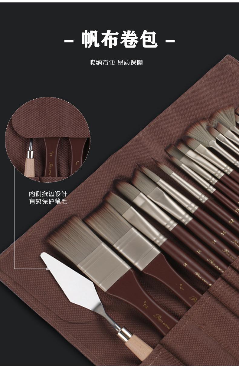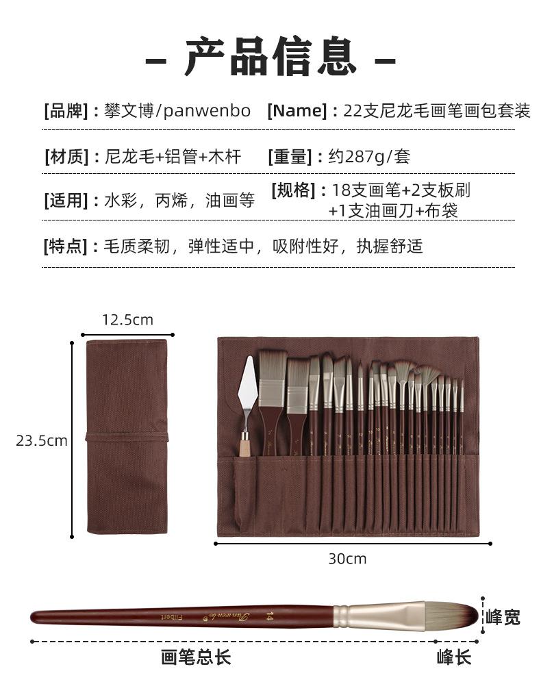 Juego de 22 pinceles de lana de nailon Panwenbo Cross-border, de grado profesional, para pintar al óleo, especial para estudiantes de Bellas Artes.