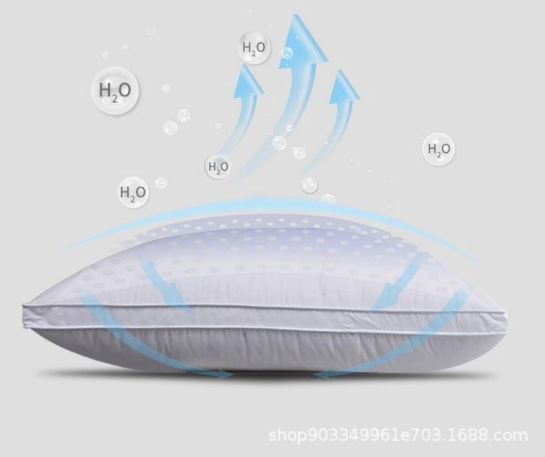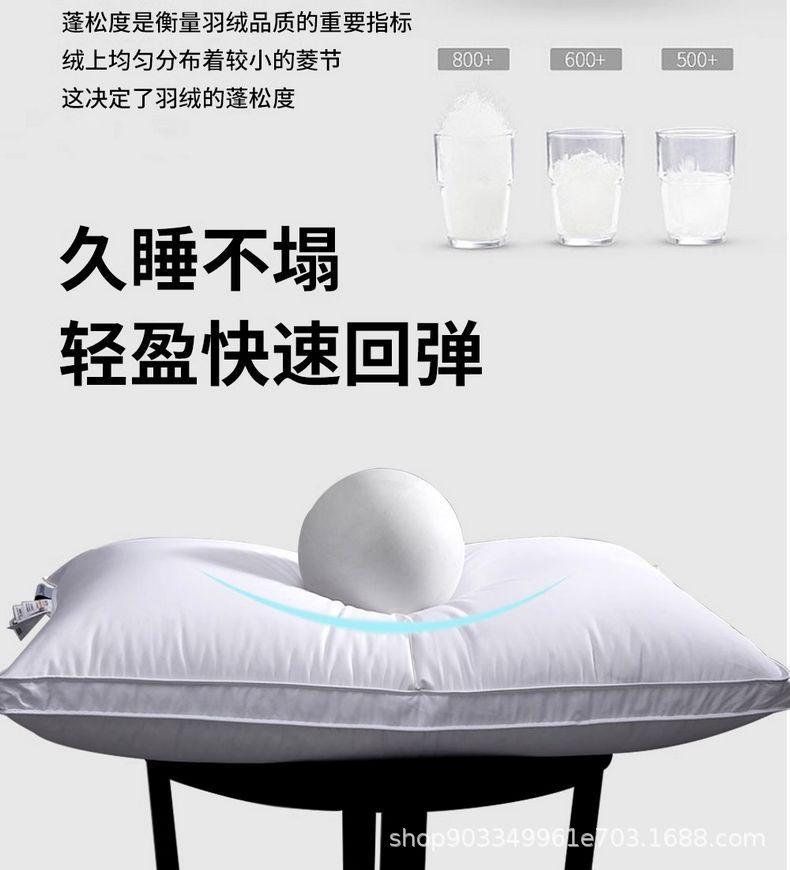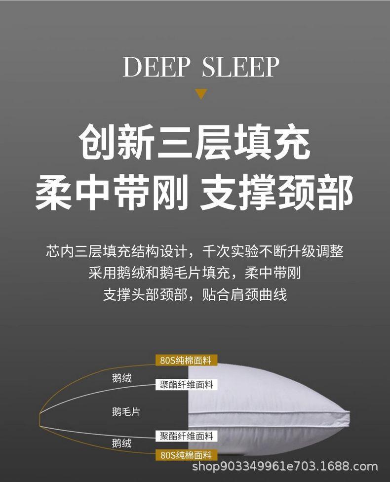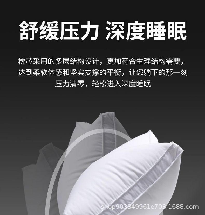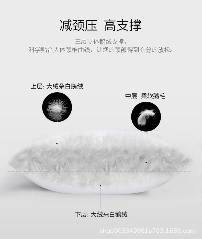 Relleno de almohada de plumón de ganso tipo sándwich: capa superior 95% plumón de ganso blanco 100g + capa media pluma de ganso 800g + capa inferior 95% plumón de ganso blanco 100g