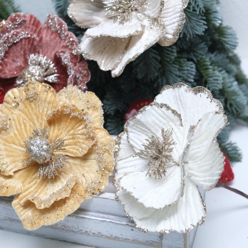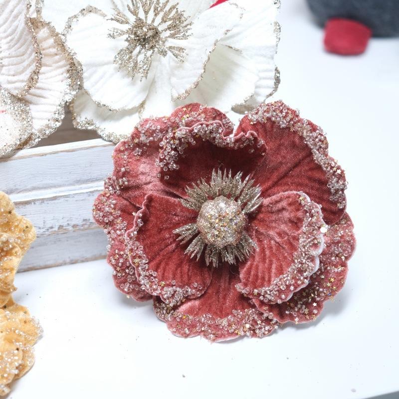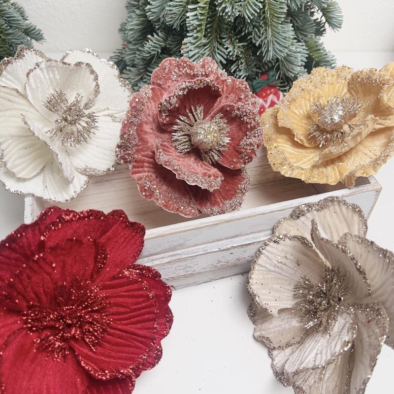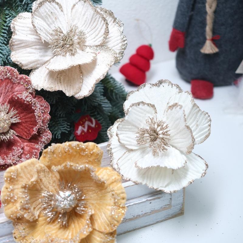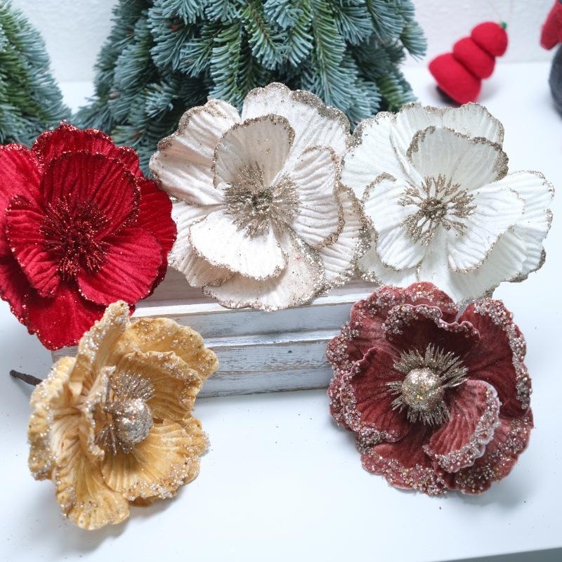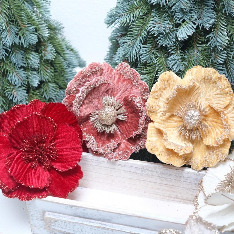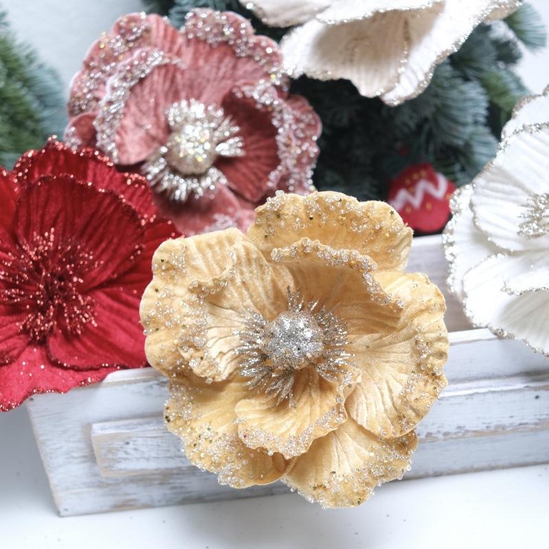 Flores de Navidad Pequeñas de Navidad Transfronterizas, Árbol de Navidad Tela Terciopelo con Lentejuelas de Brillo Dorado, Decoración Atmosférica Flores Pequeñas