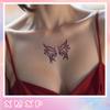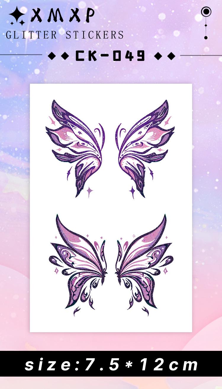 Pegatina de tatuaje de mariposa con purpurina morada, resistente al agua, de larga duración, para maquillaje facial y de brazo de mujer, hermosa pegatina lavable.