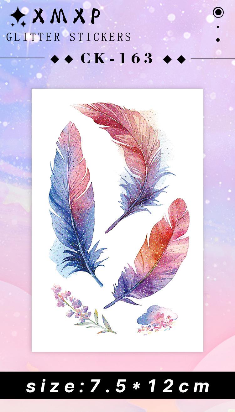 Pegatina de tatuaje con plumas de colores, purpurina rosa, resistente al agua, de larga duración, para brazos y piernas de mujer, estética avanzada, lavable.