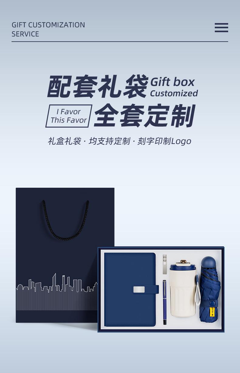 Blue sw book + silver buckle pen + business usb flash drive + coffee cup + 6 umbrellas