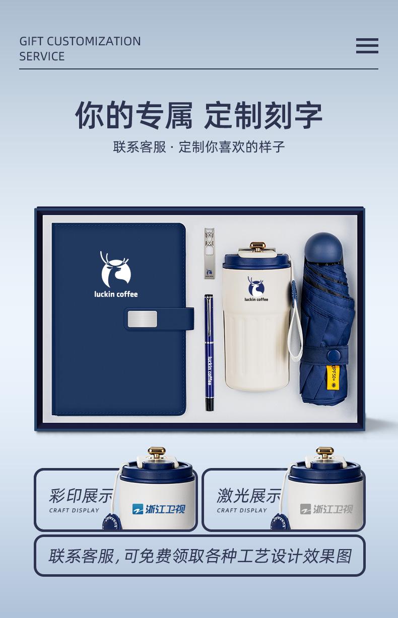 Blue sw business book + silver buckle signature pen + coffee cup + 6 umbrellas