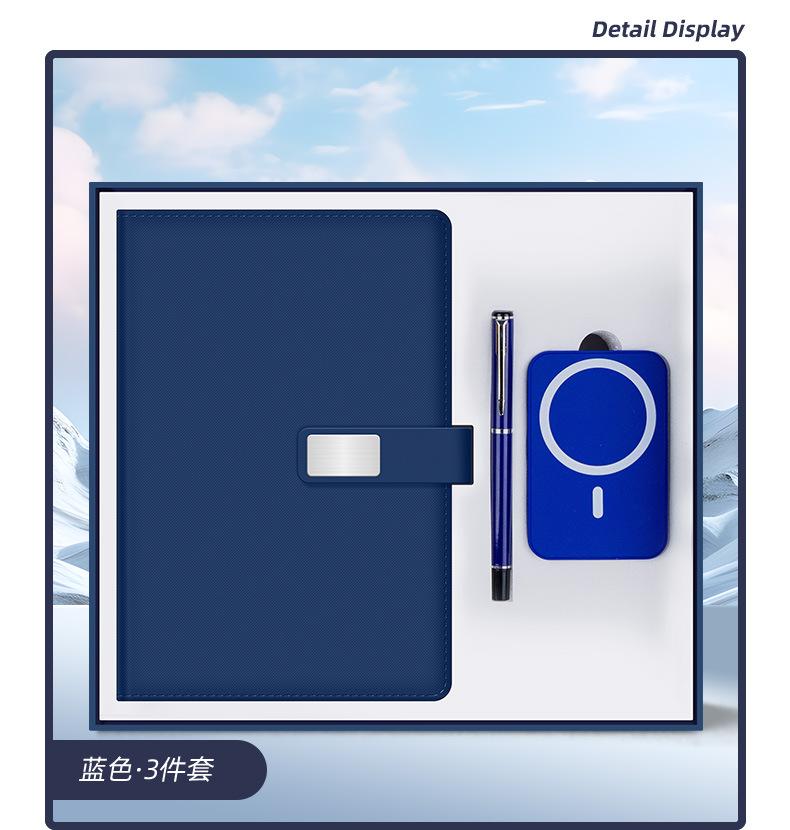 Blue sw business book + silver buckle signature pen + wireless charging treasure