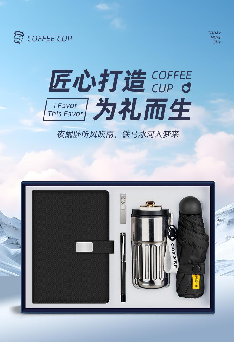 Black sw business book + silver buckle signature pen + coffee cup + 6 umbrellas