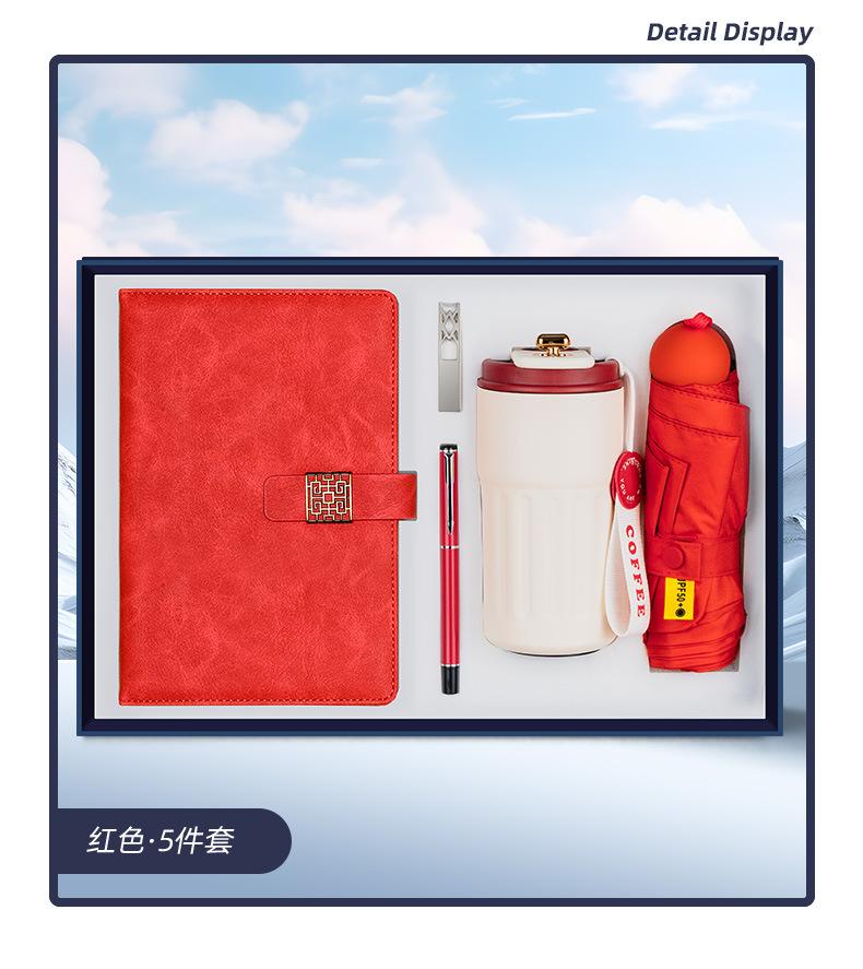 Red sw business book + silver buckle signature pen + coffee cup + 6 umbrellas