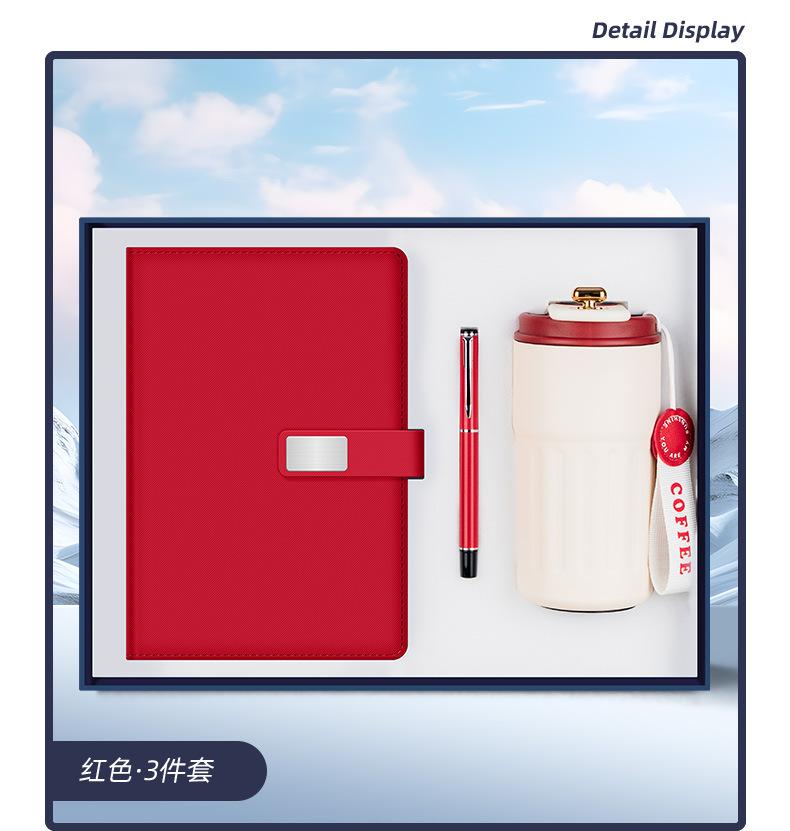 Red sw business book + silver buckle signature pen + business usb flash drive + coffee cup