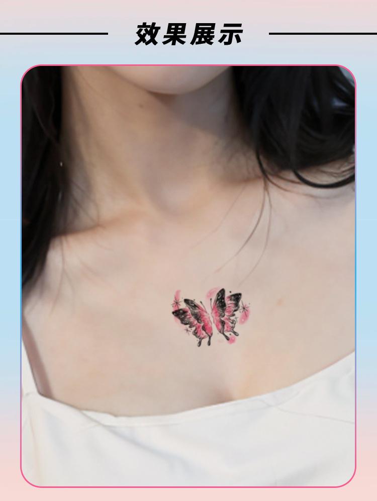Pegatina de tatuaje de mariposa de color sexy, hermosa, resistente al agua, de larga duración, para brazo de mujer, clavícula, sensación avanzada, fresca, lavable.