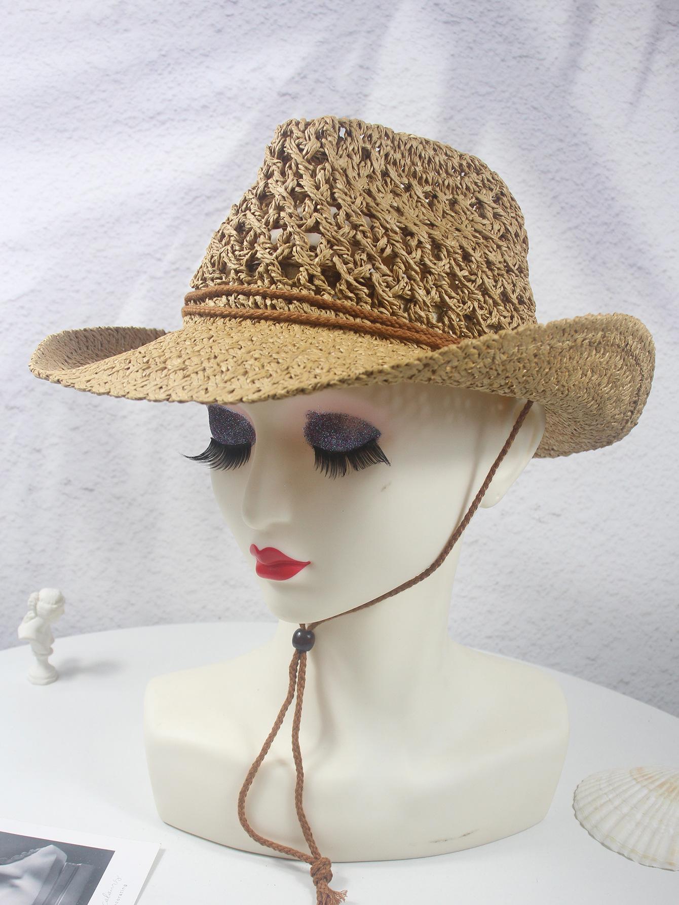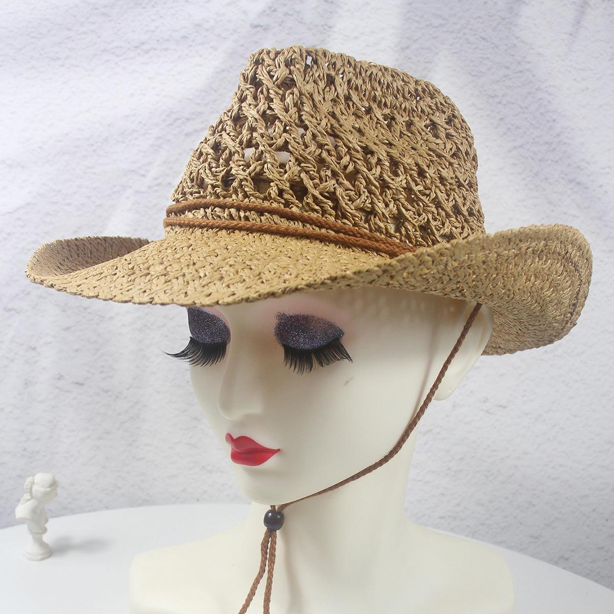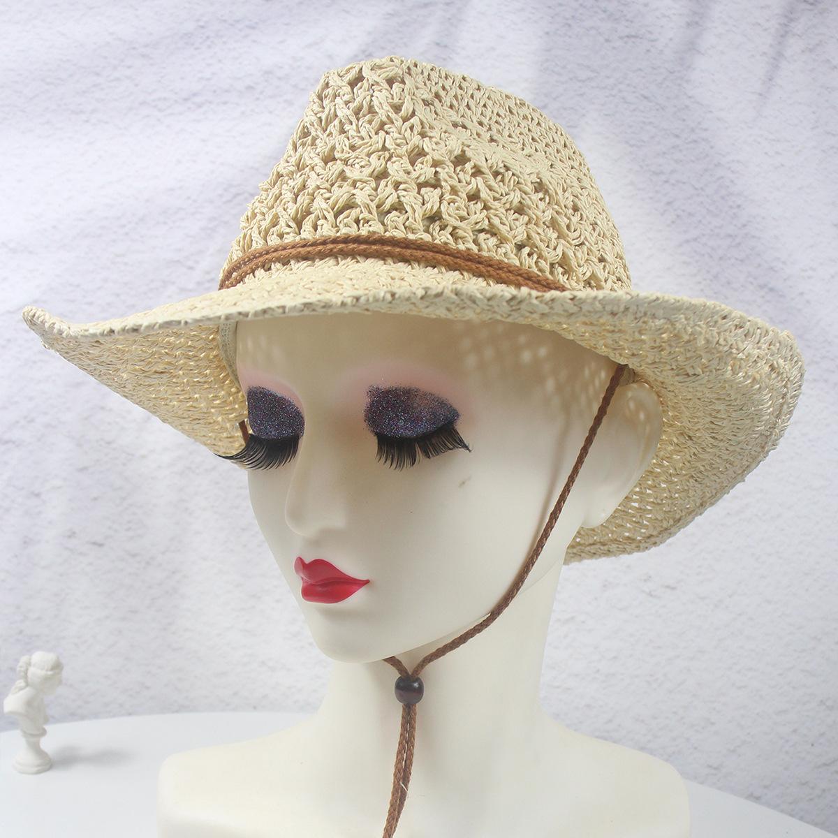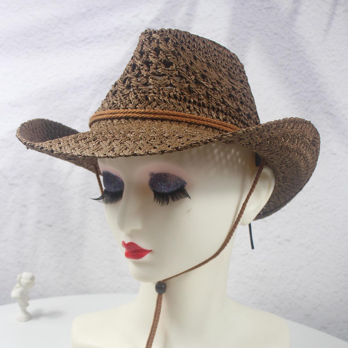 Sombrero vaquero hueco nuevo de primavera y verano, sombrero de paja tejido a mano, transpirable, fresco, americano, rizado, para comercio exterior, jazz, sombrero de regalo