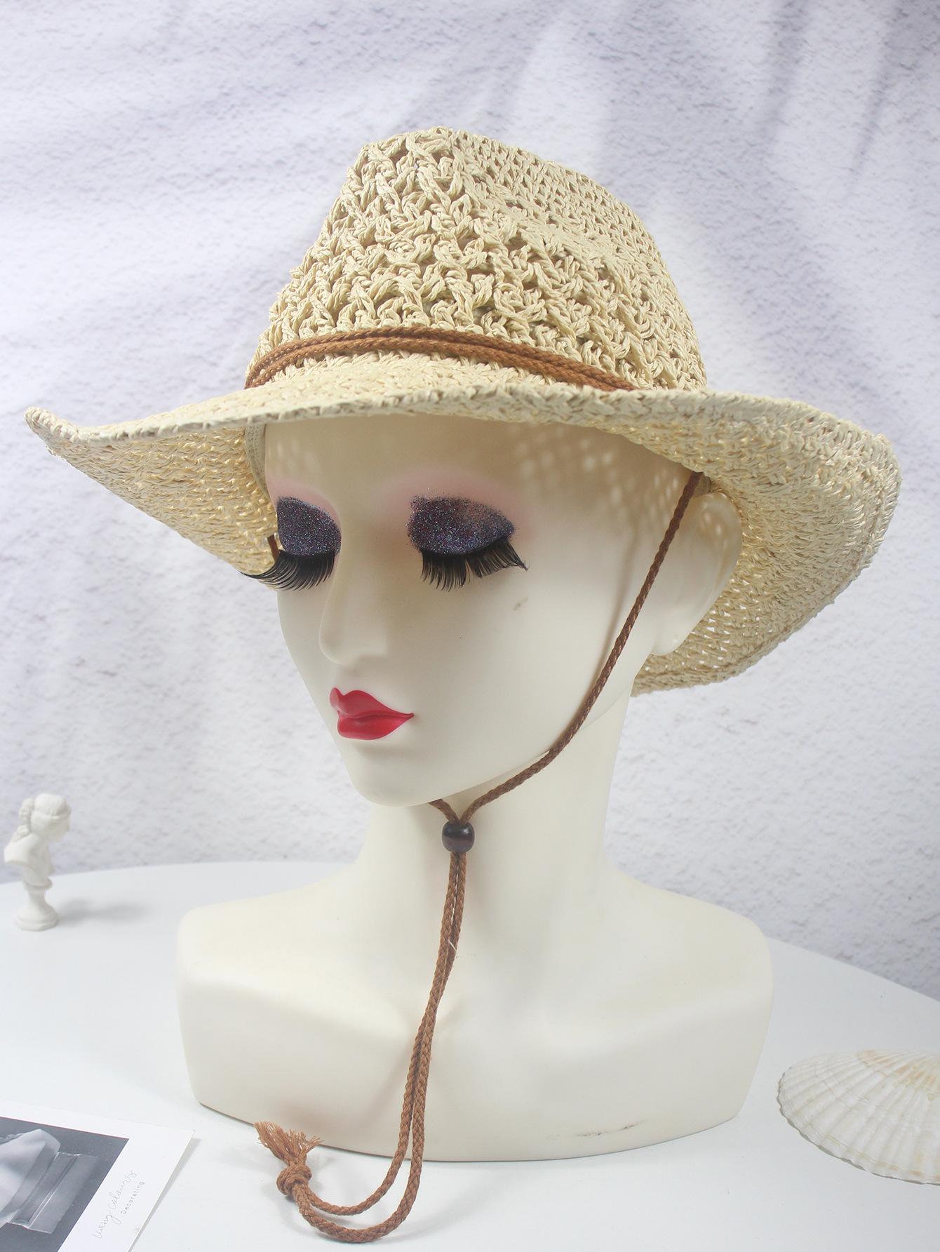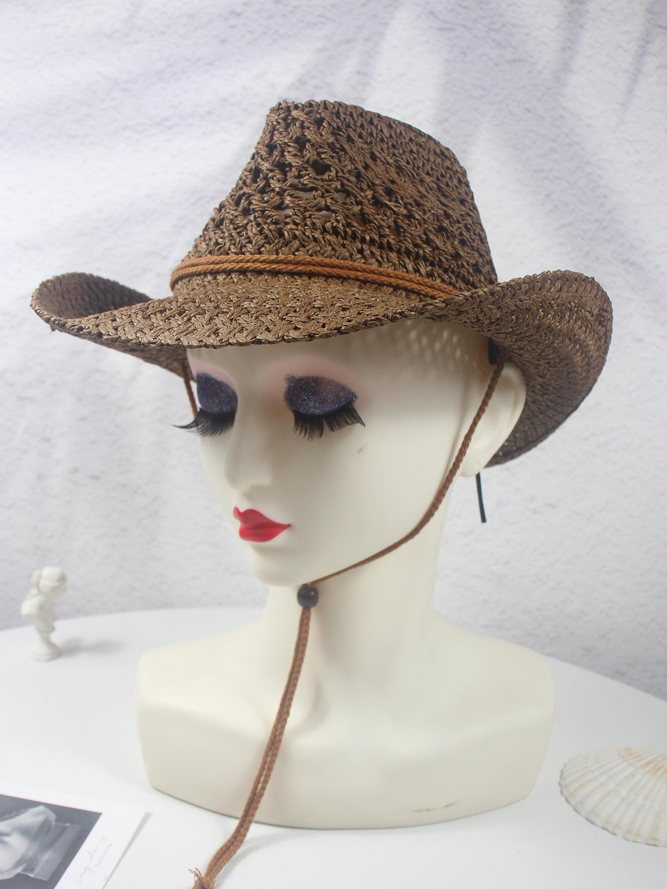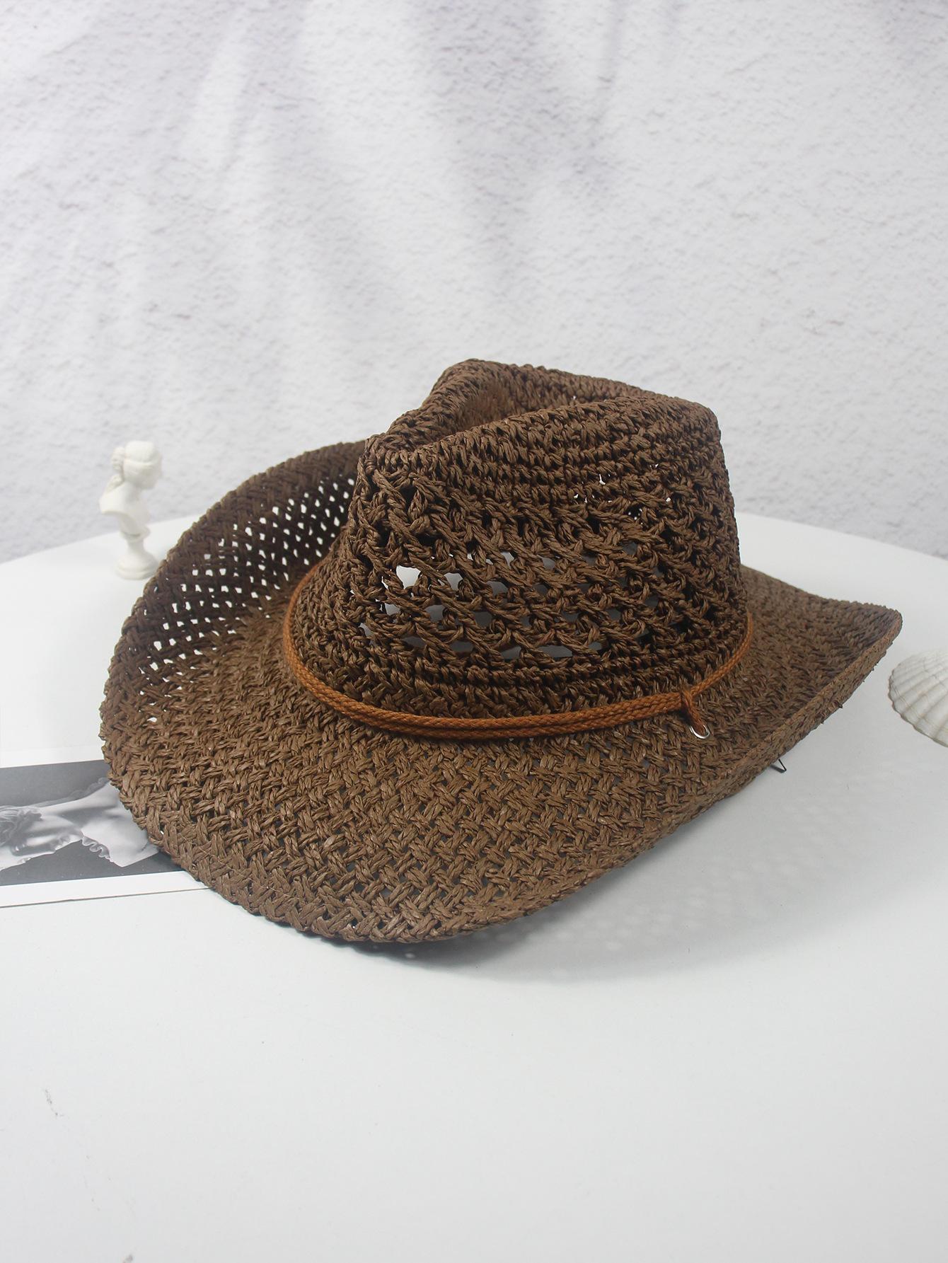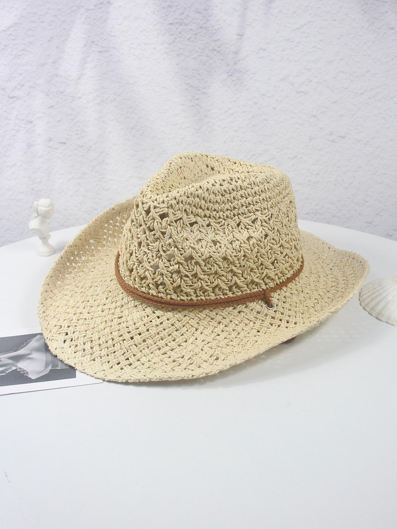 Sombrero vaquero hueco nuevo de primavera y verano, sombrero de paja tejido a mano, transpirable, fresco, americano, rizado, para comercio exterior, jazz, sombrero de regalo