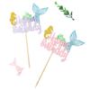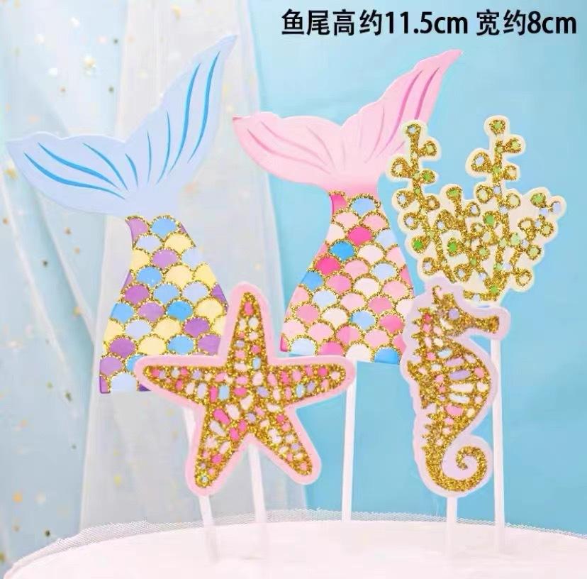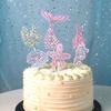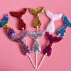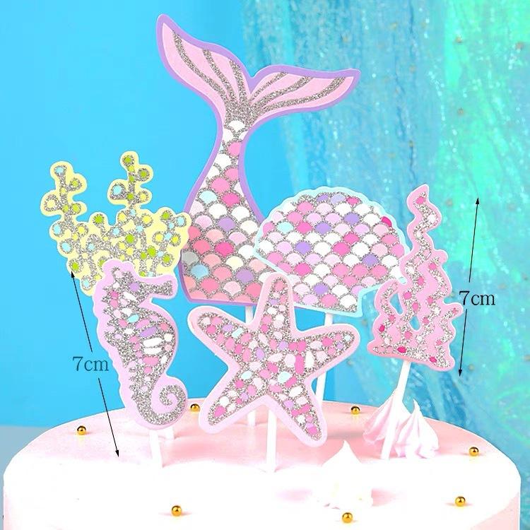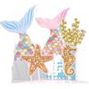 Decoración de pastel de cola de sirena con lentejuelas de colores, concha, estrella de mar, serie océano, tarjeta de cumpleaños para niña