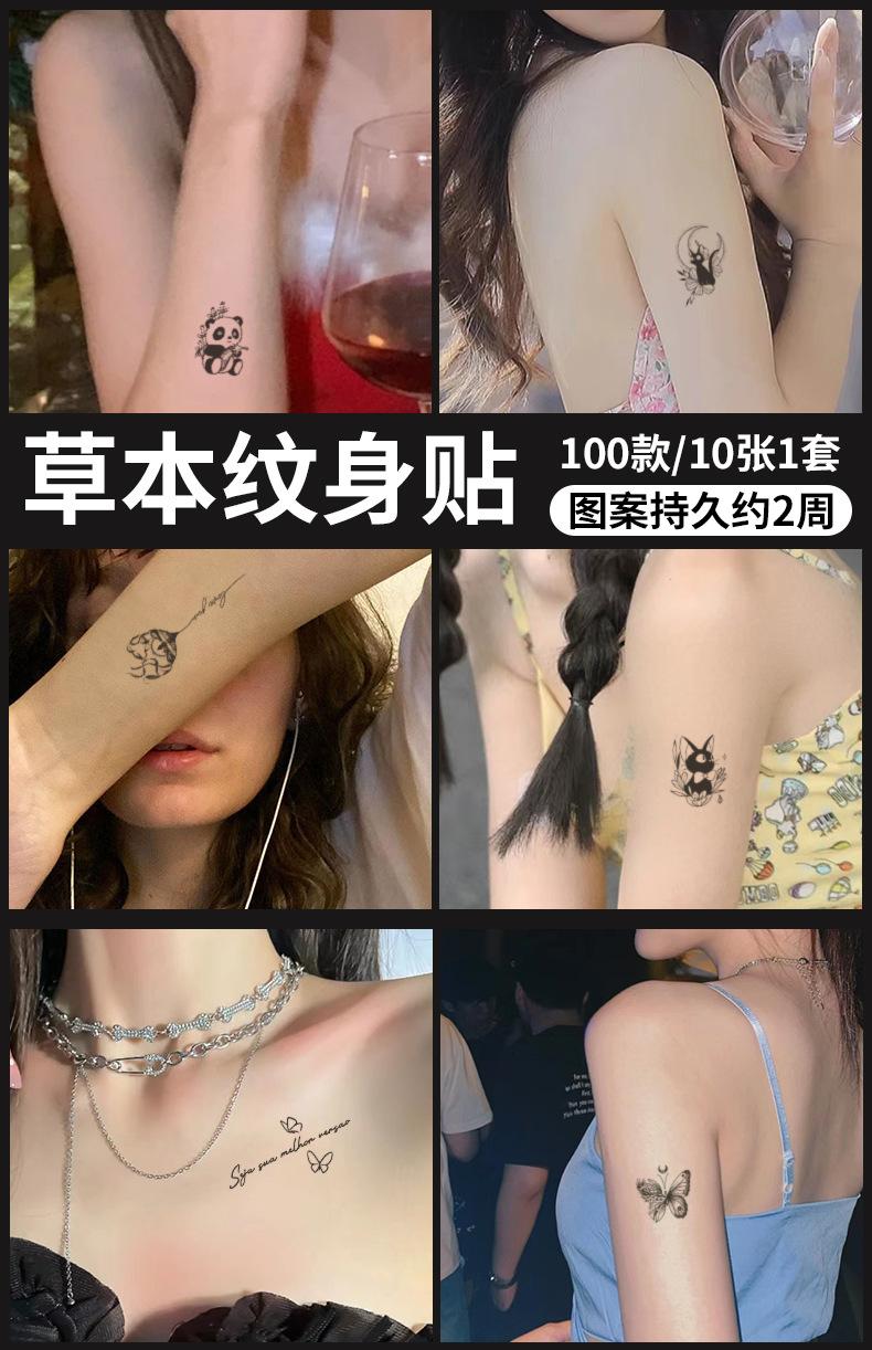 Tatuaje adhesivo de larga duración, resistente al agua, con diseño de jugo de hierbas, para mujer, sexy, con diseño de flor y mariposa, pequeño, fresco y no reflectante.