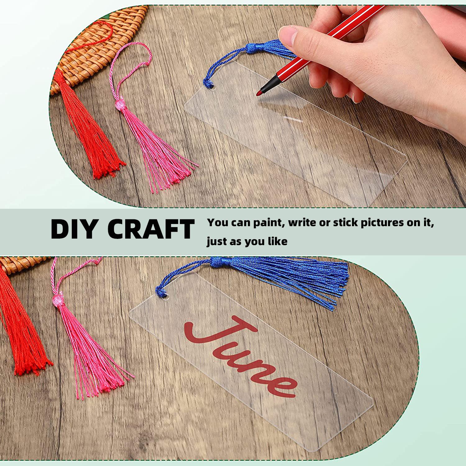 Set de marcapáginas acrílicos en blanco DIY de 20 px, marcapáginas acrílicos transparentes en blanco con borla, etiqueta decorativa