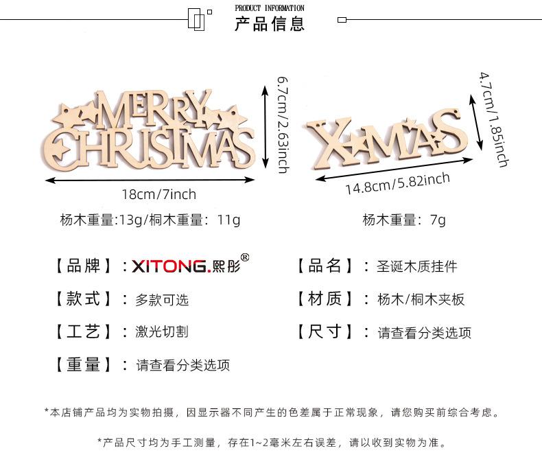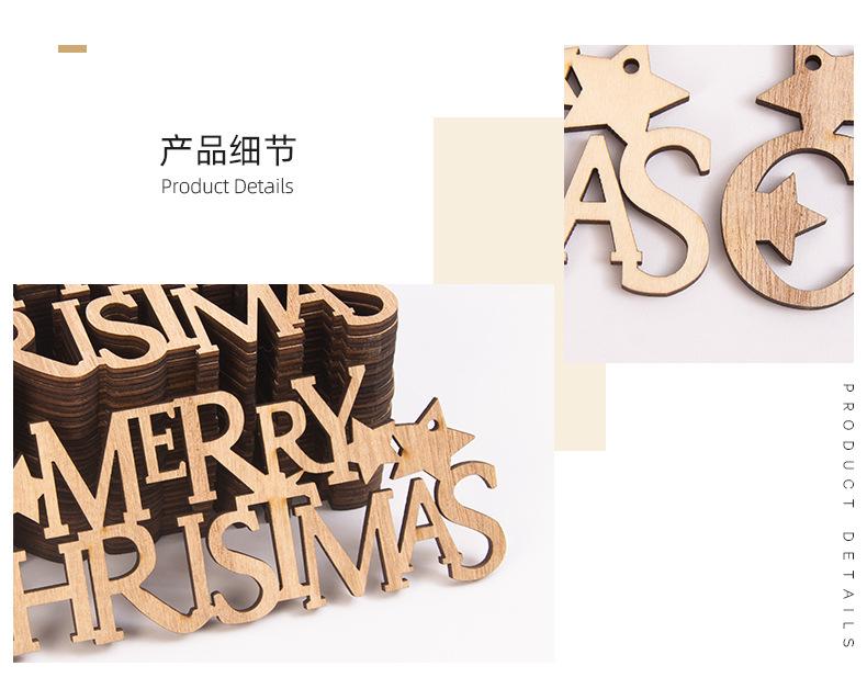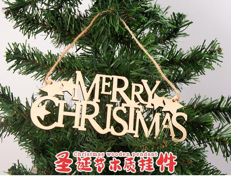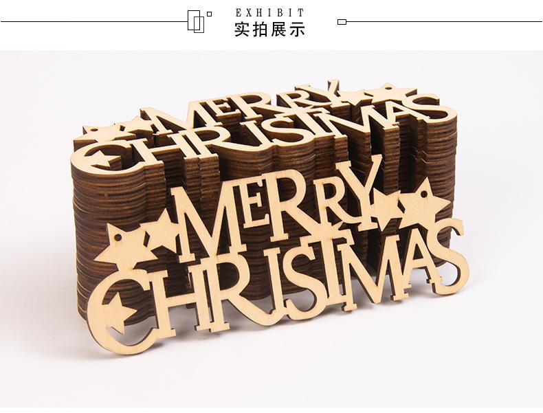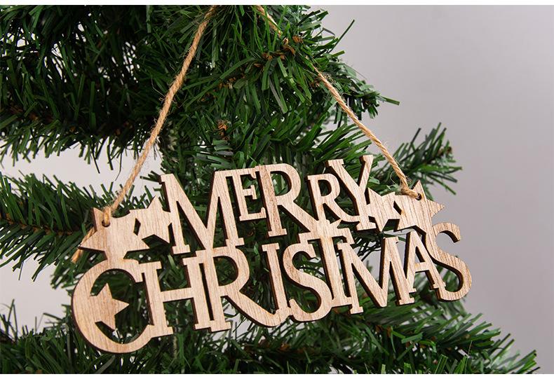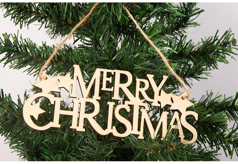 Colgante de decoración navideña transfronterizo de madera con la letra Merry Christmas para colgar en el árbol de Navidad