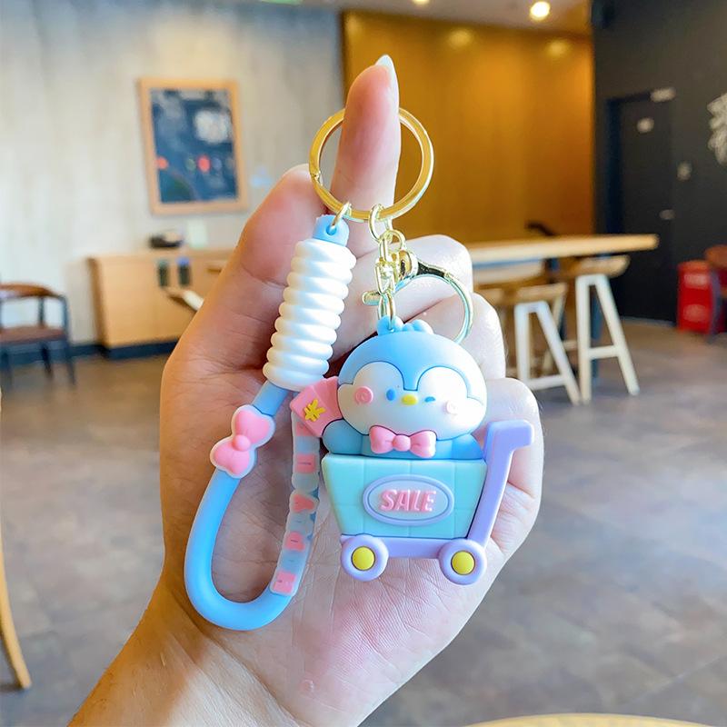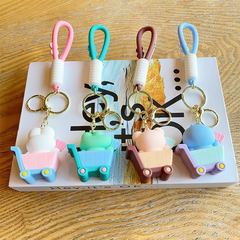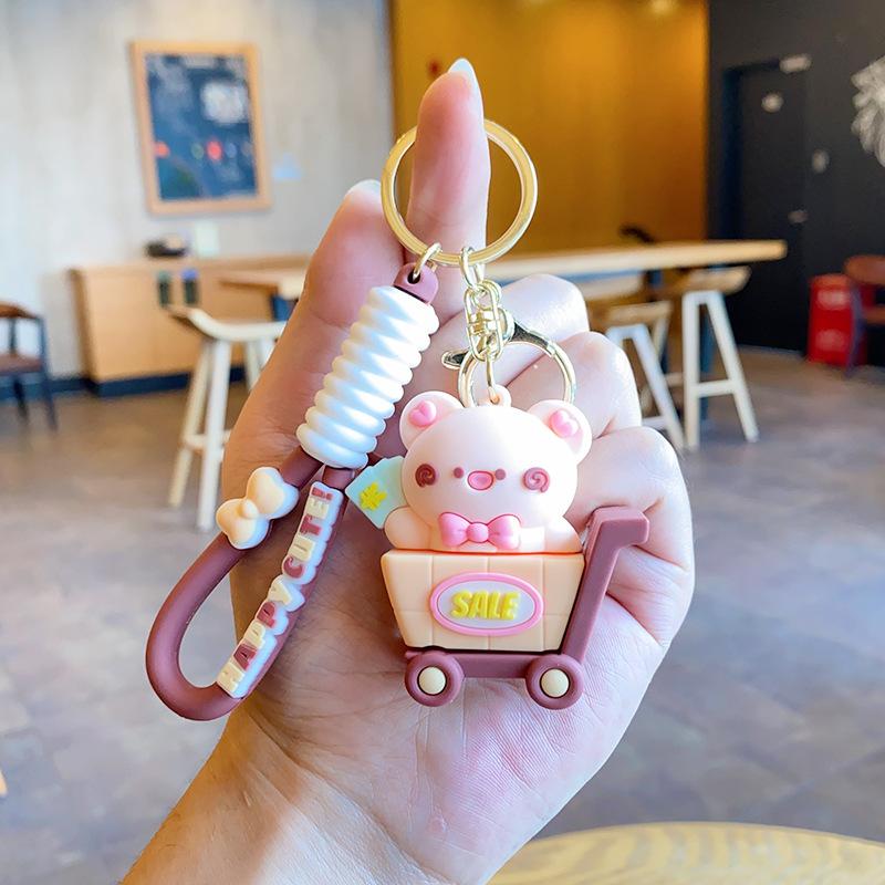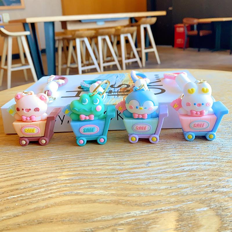 Llavero de carrito de compras de animalito de dibujos animados, tarjeta exquisita, muñeca de amor, adornos para mochila, adornos, pareja, pequeños regalos al por mayor