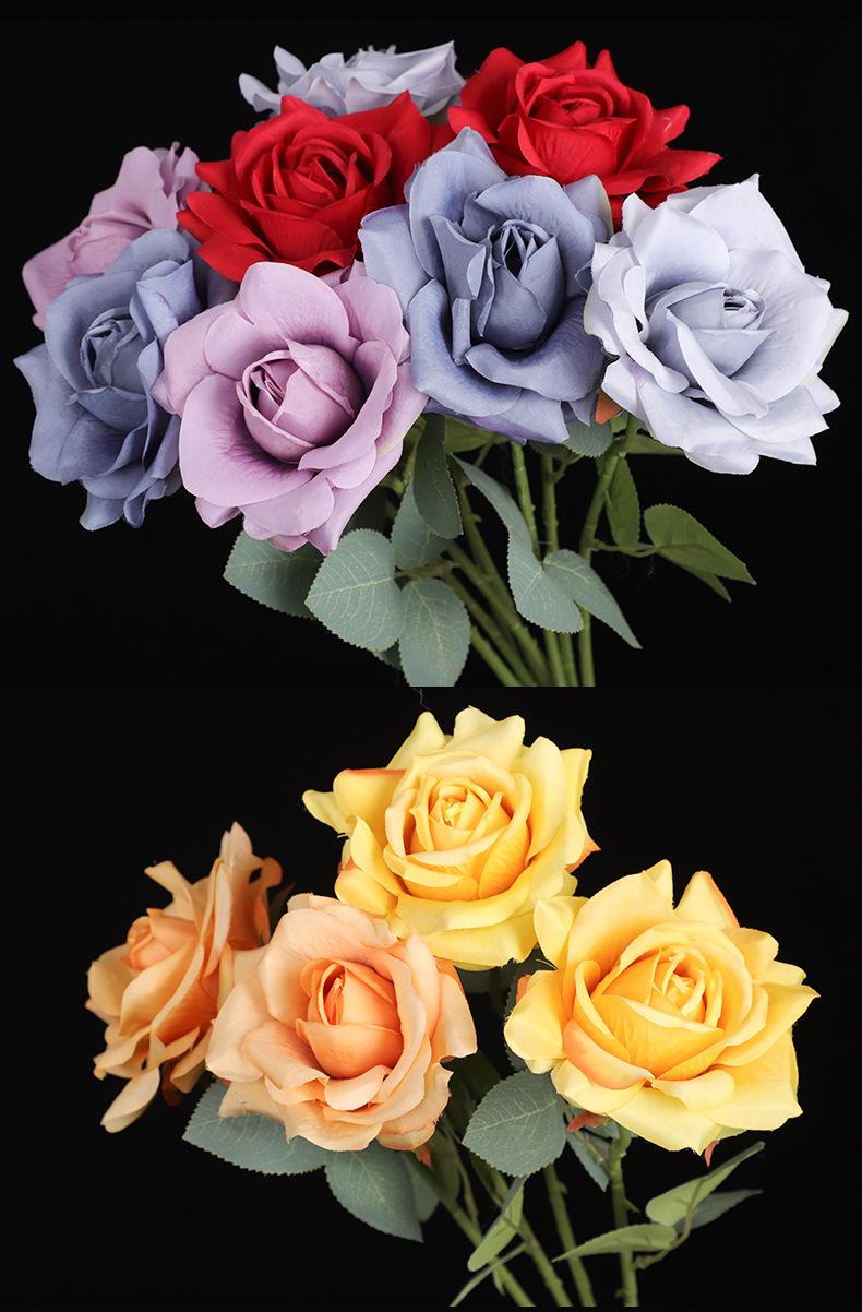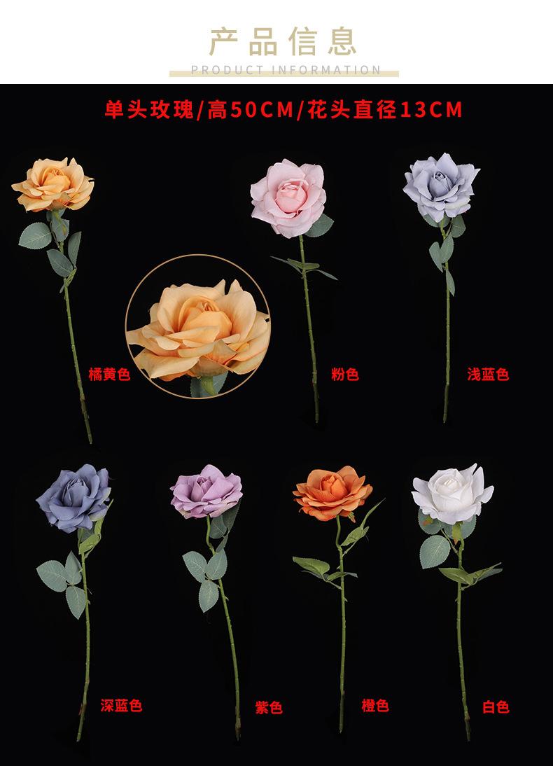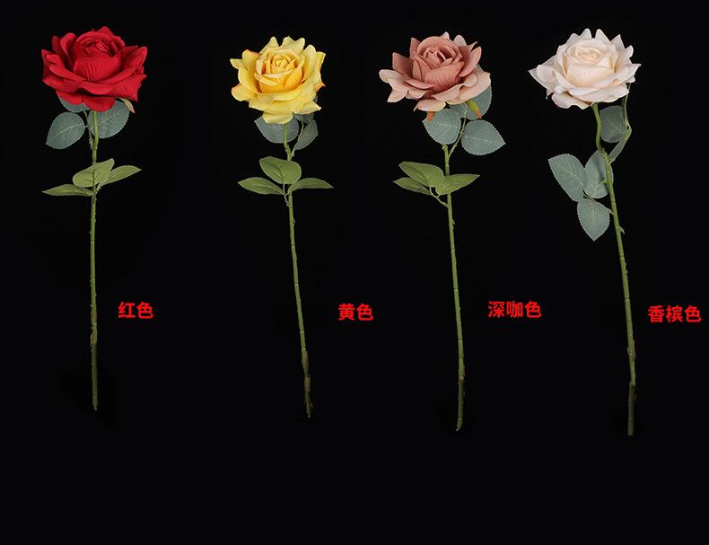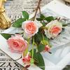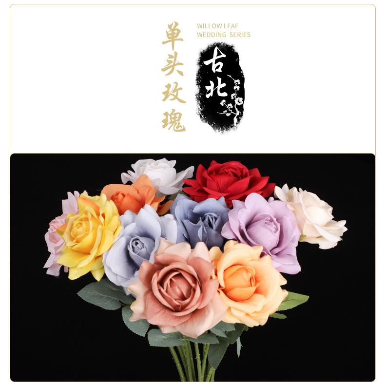 Decoración de boda con una sola cabeza de rosa artificial, diseño floral con una sola rama de rosa angular, decoración suave, flor artificial hecha a mano