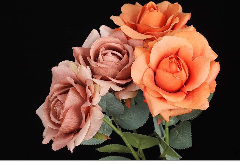 |Rosa de simulación de tres cabezas rosa de borde rizado venta al por mayor de fábrica decoración del hogar arco escenografía con flores artificiales transfronterizo