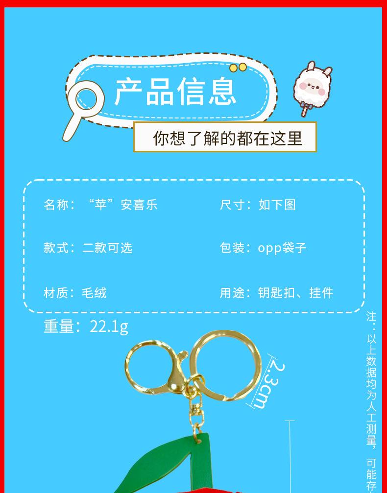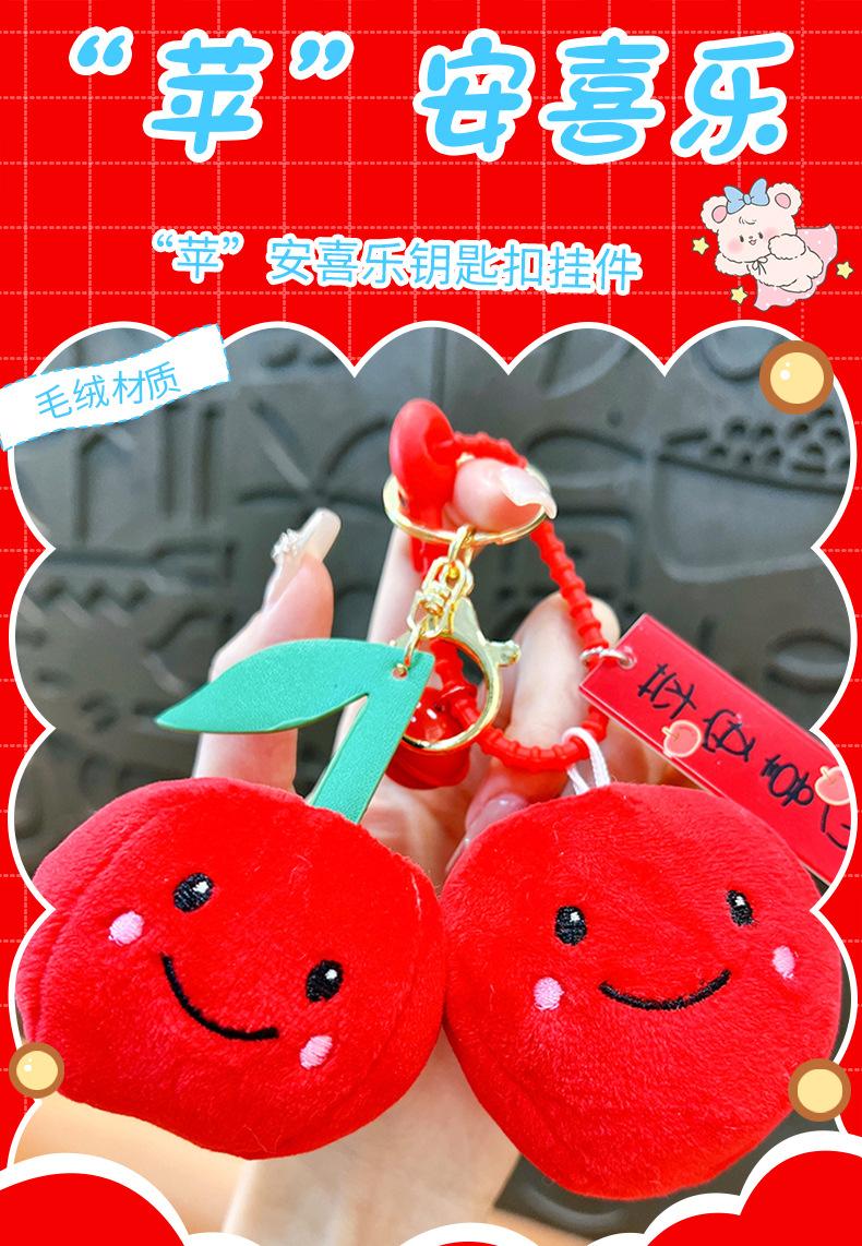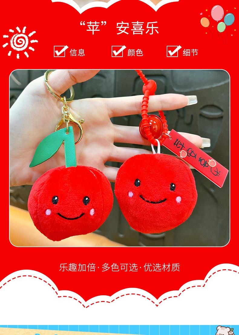 Llavero de manzana de peluche creativo de paz alegría regalo de Navidad colgante de fruta de peluche accesorios para bolso al por mayor