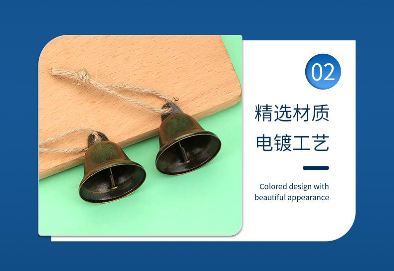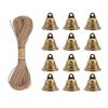 Campana de decoración navideña de cuerda de cáñamo, traje de 38 mm, campana de bronce con apertura de cuerno vintage, campana de viento decorativa